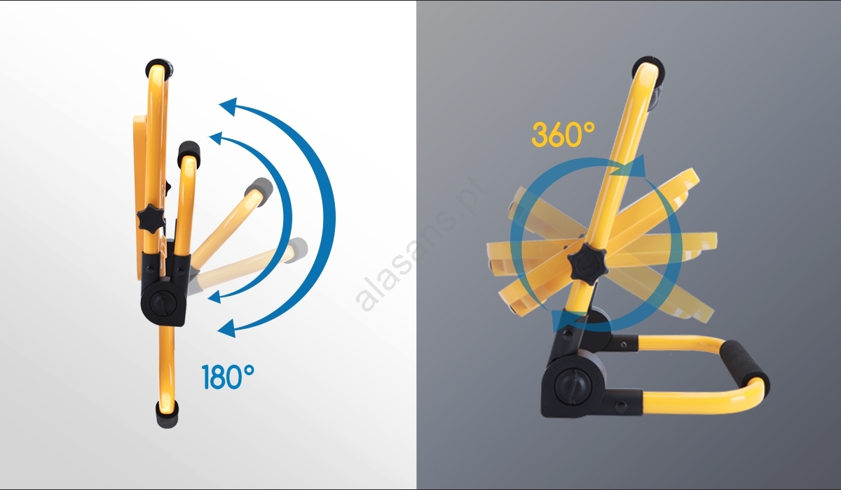• Suporte giratório em 180° e corpo da lâmpada giratório em 360°.