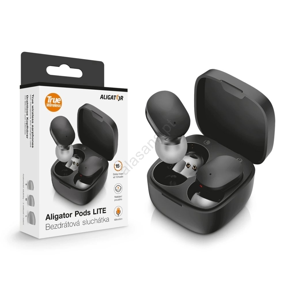 Aligator TWS05 - Auscultadores sem fios Pods LITE 200 mAh + 2x 30 mAh IP30 pretos