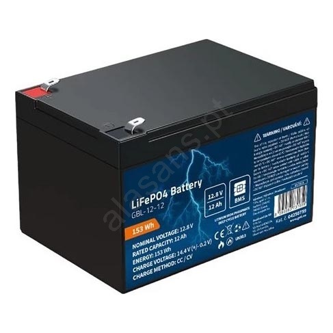 • Oferece tensão nominal de 12,8 V e capacidade de 12 Ah, o que corresponde a uma energia total de 153 Wh.