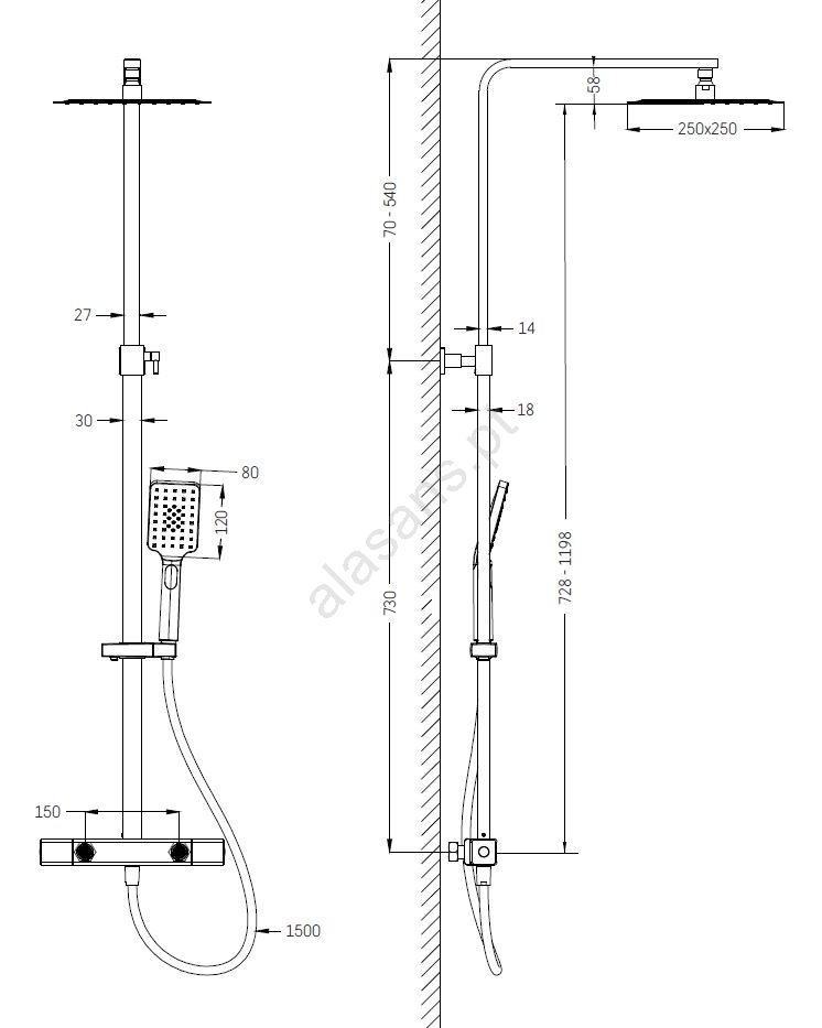 • O conjunto é composto por uma torneira termostática em latão maciço.