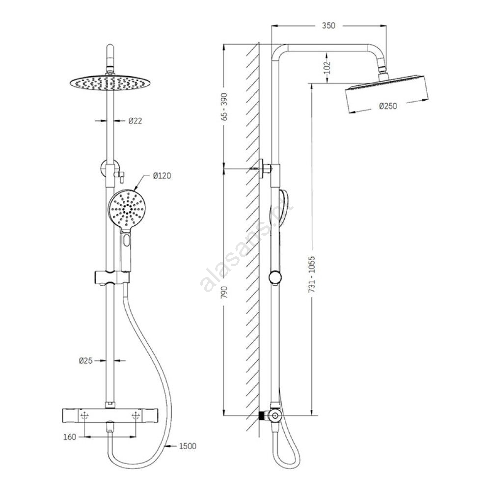 • O conjunto é composto por uma torneira termostática em latão maciço.
