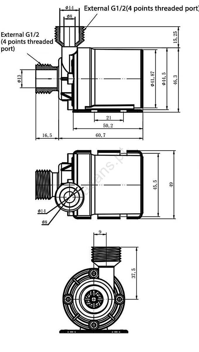 • Altura máxima de elevação: 5 m - com coluna de água maior, a vazão diminui.
