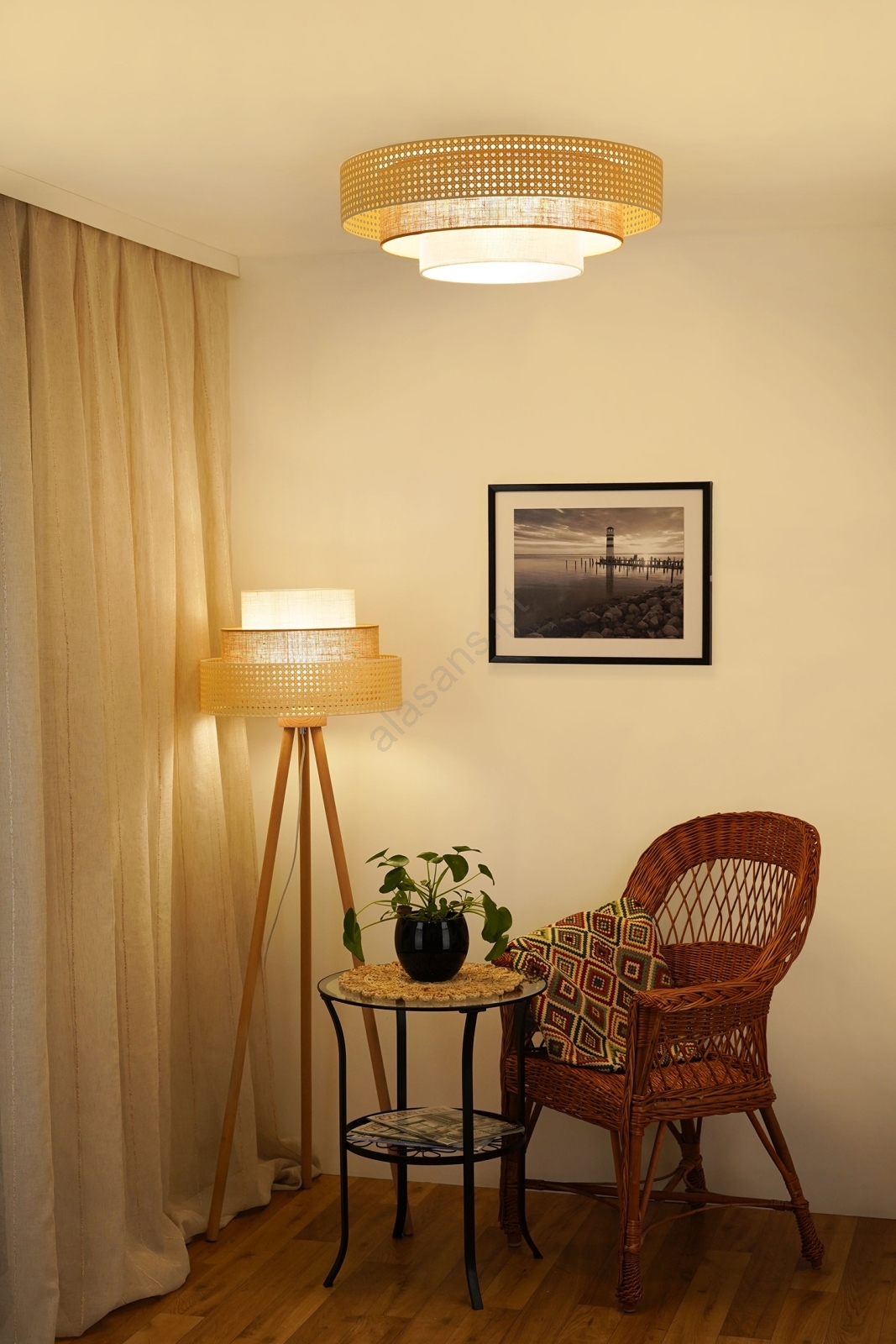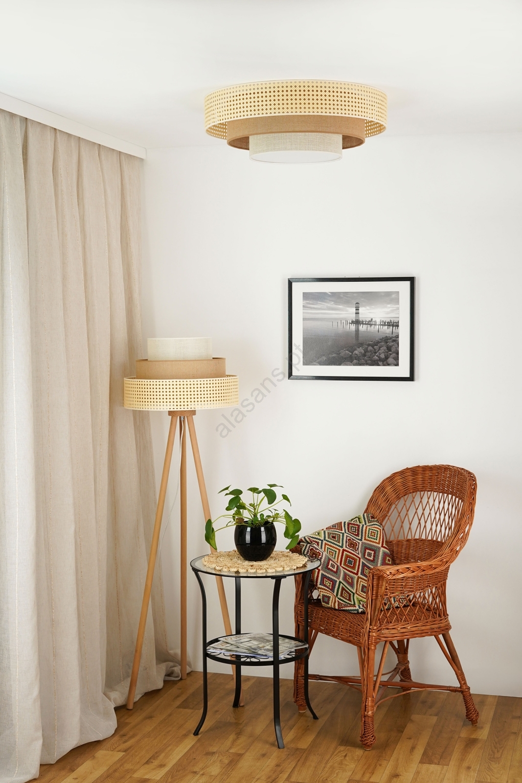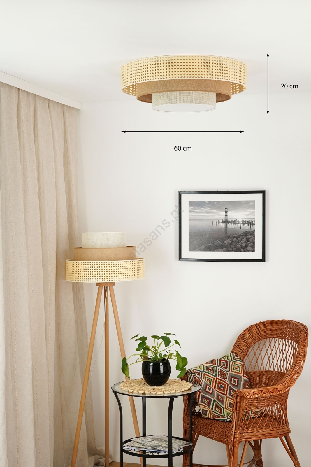 Brilagi - Candeeiro de teto LED CEDAR LUNETA LED/26W/230V Ø 60 cm rattan/castanho/creme