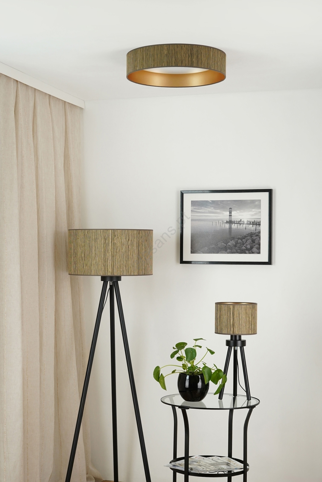 Brilagi - Luminária de teto LED dimerizável VEGAS SHINE LED/24W/230V diâmetro 45 cm 3000/4000/6500K palha castanha/dourada + controlo remoto