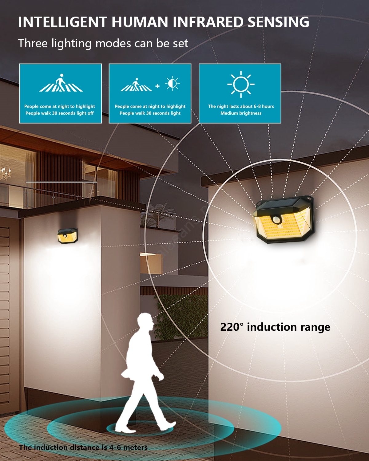• Luminária de parede LED solar econômica que carrega com energia solar e não gera custos operacionais.