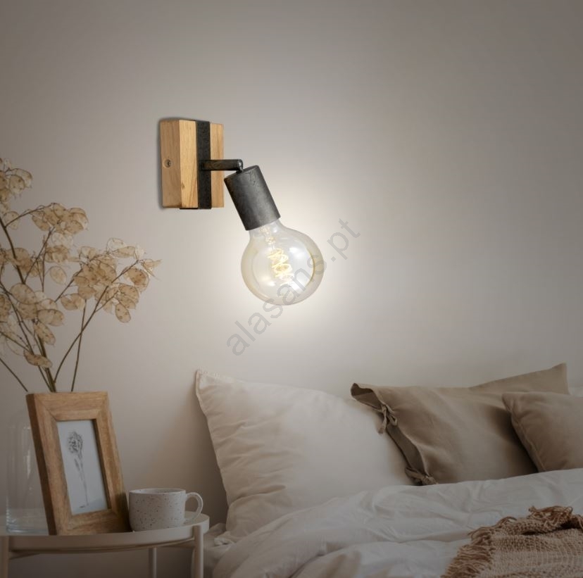 Briloner 2900-011 - Foco de parede WOOD BASIC 1xE27/25W/230V caracteriza-se por um design agradável e funcional.  Uma lâmpada com casquilho E27 é adequada para a iluminação Aqui, pode comprar outras lâmpadas a preços vantajosos. Terá um complemento interessante para a sua casa.