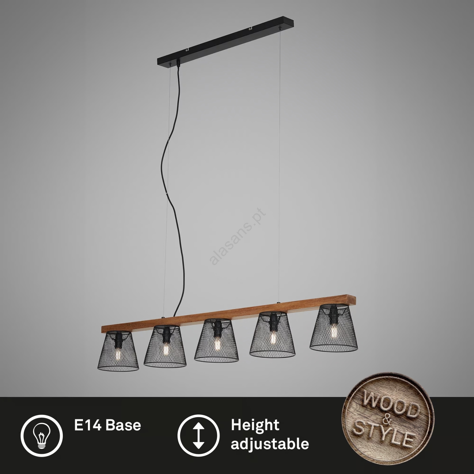 Briloner 4077-055 - Lustre suspenso por cabo WOOD & STYLE 5xE14/25W/230V em madeira de seringueira caracteriza-se por um design agradável e funcional.  Uma lâmpada com casquilho E14 é adequada para a iluminação Aqui, pode comprar outras lâmpadas a preços vantajosos. Terá um complemento interessante para a sua casa.