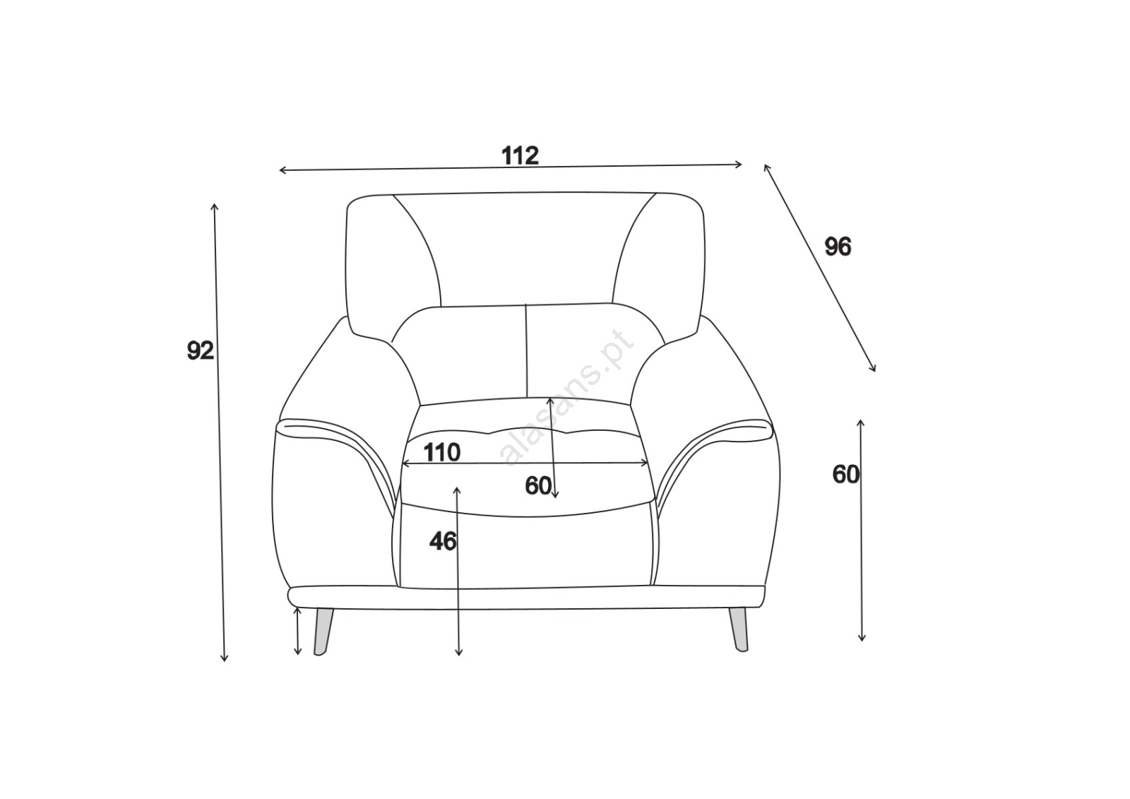 • Com 92 cm de altura, assento confortável a 46 cm de altura e profundidade de 60 cm, garante uma posição ergonômica e relaxante.