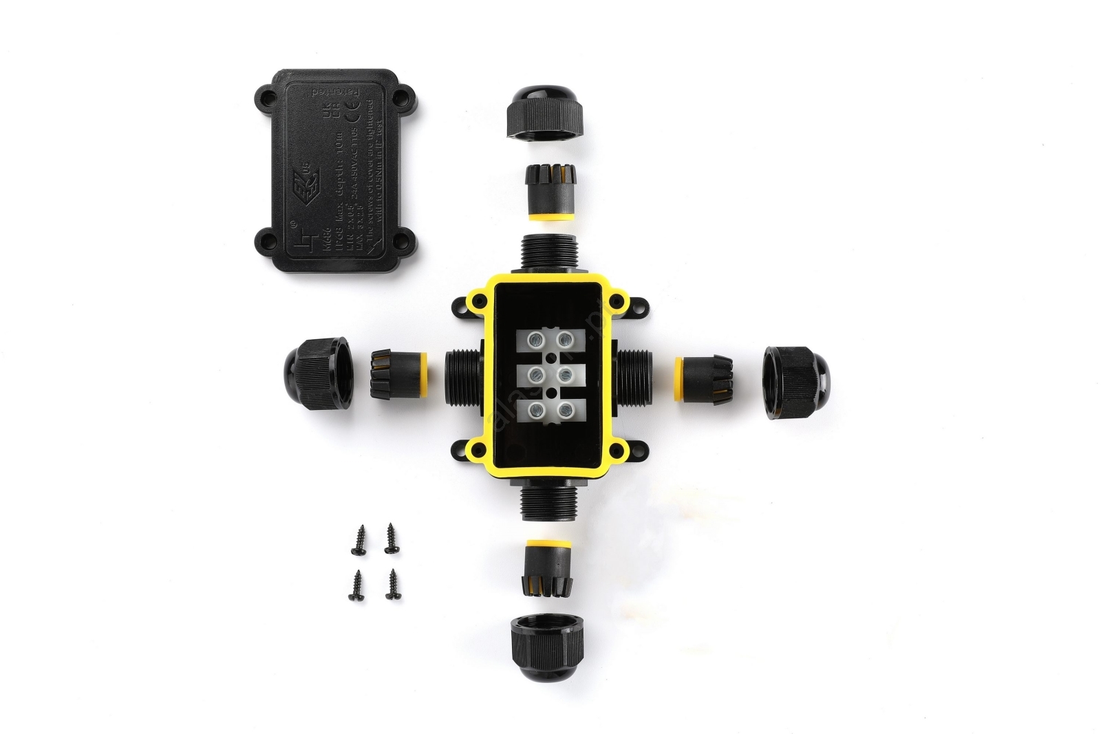 • Caixa de conexão à prova d'água para ligação hermética de condutores.