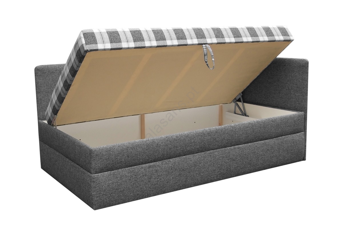 • A cama-baú dispõe de um amplo espaço de arrumação com abertura lateral para guardar roupa de cama e outros artigos sazonais.