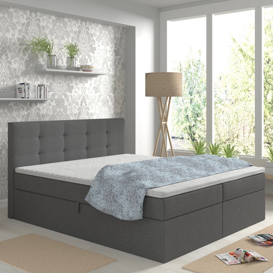 • Cama estofada EMBER 160x200 cm, com colchões, sobrecolchão e espaço de arrumação — antracite