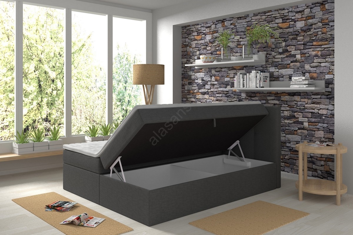 Cama estofada EMBER 160x200 cm, com colchões, sobrecolchão e espaço de arrumação — antracite