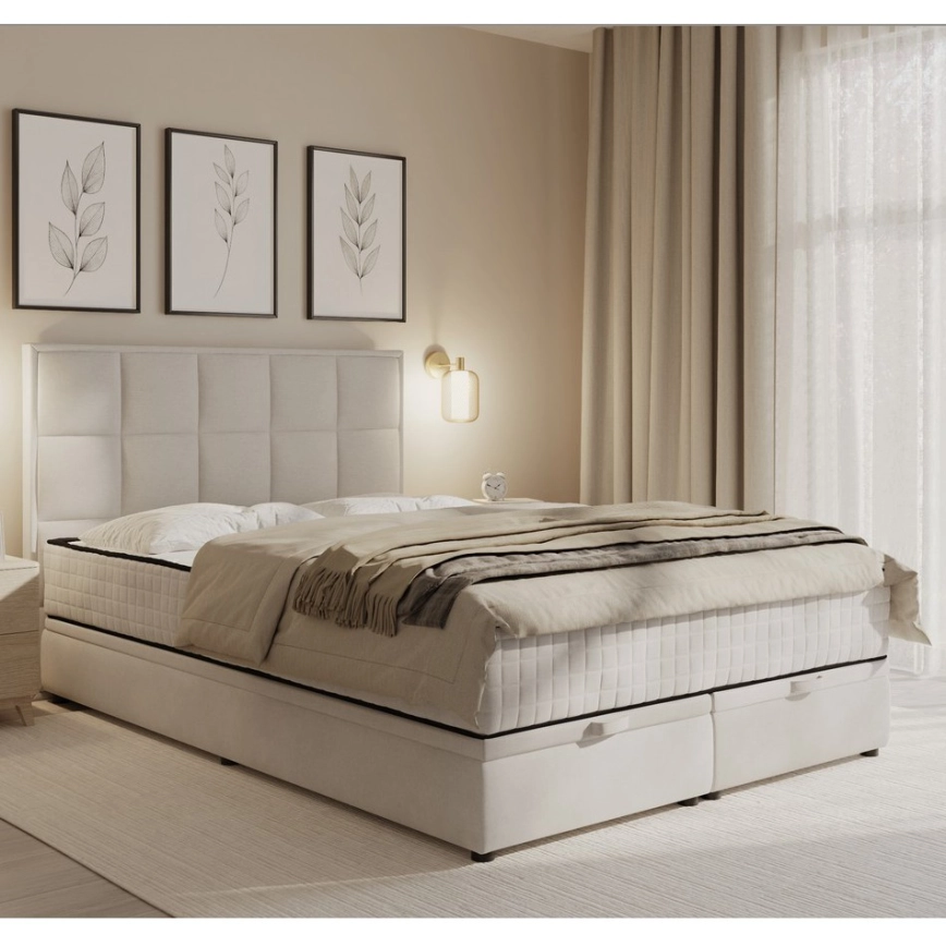 • Cama estofada GRACE 180x200 cm com colchões e espaço de arrumação, bege