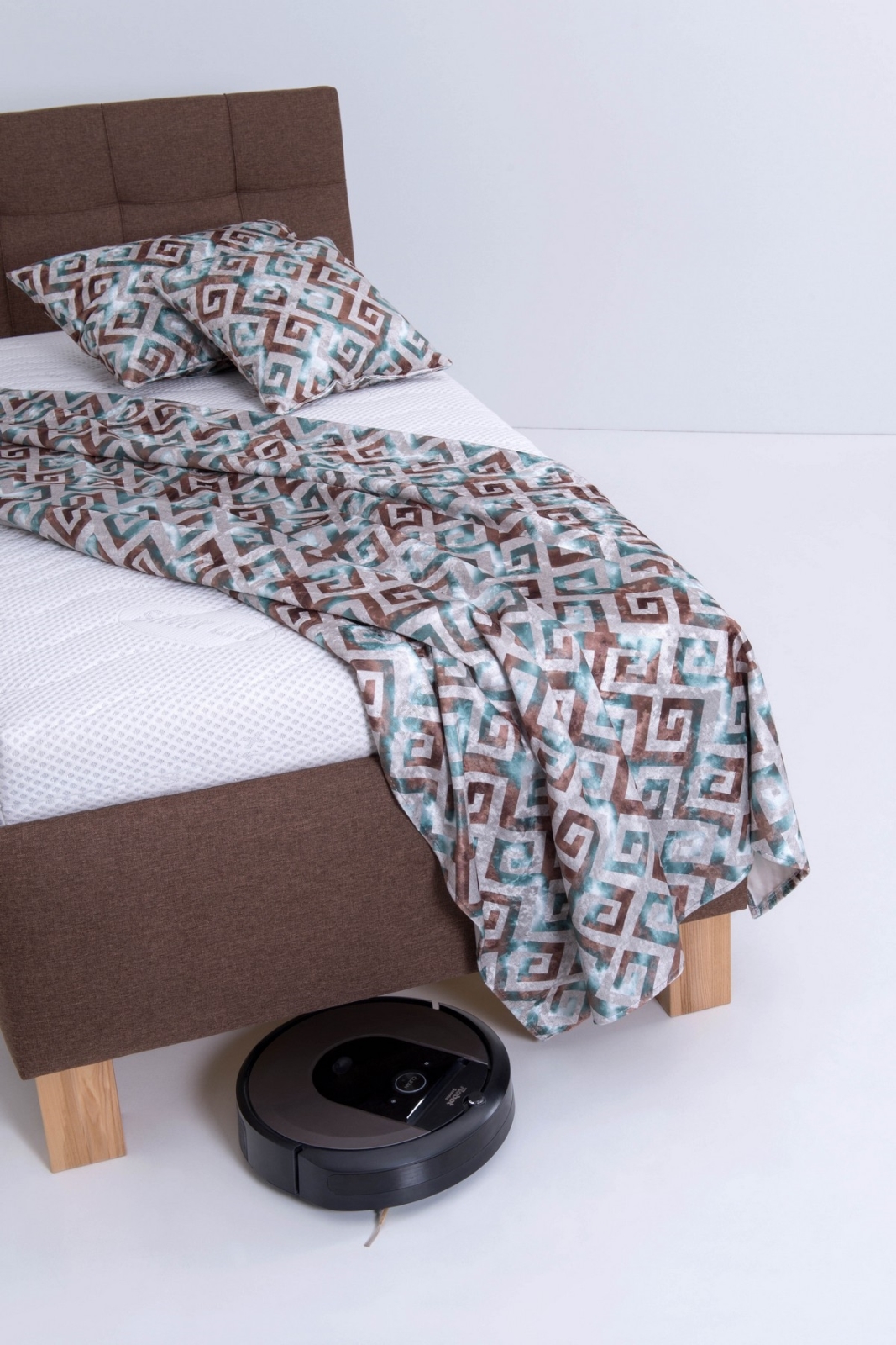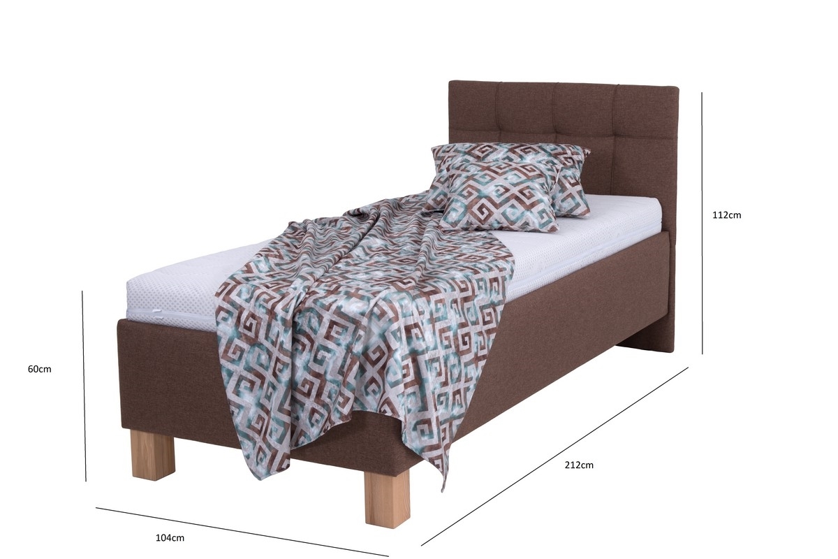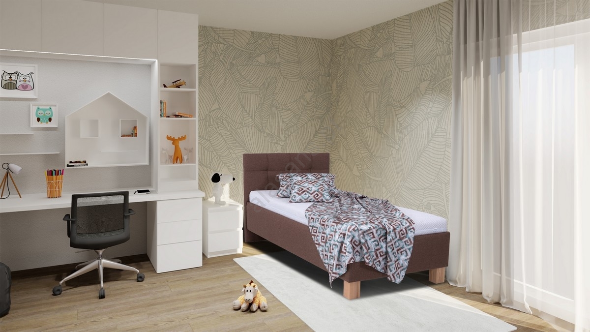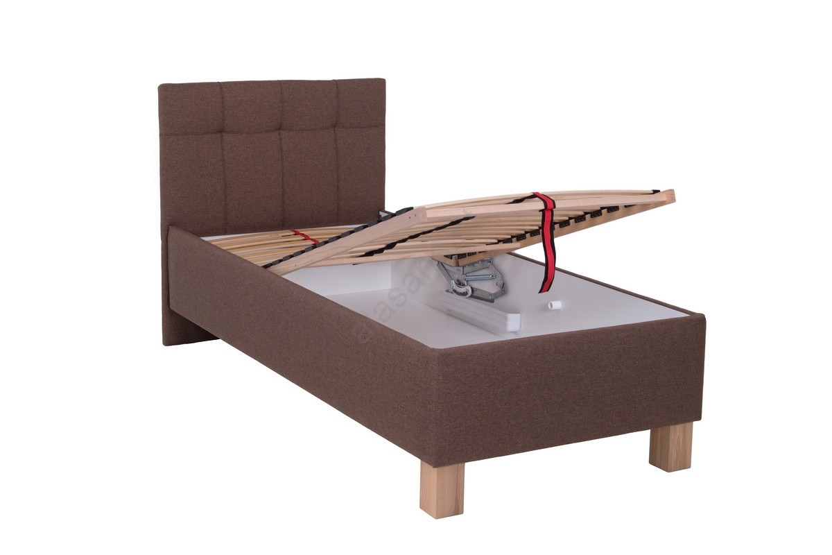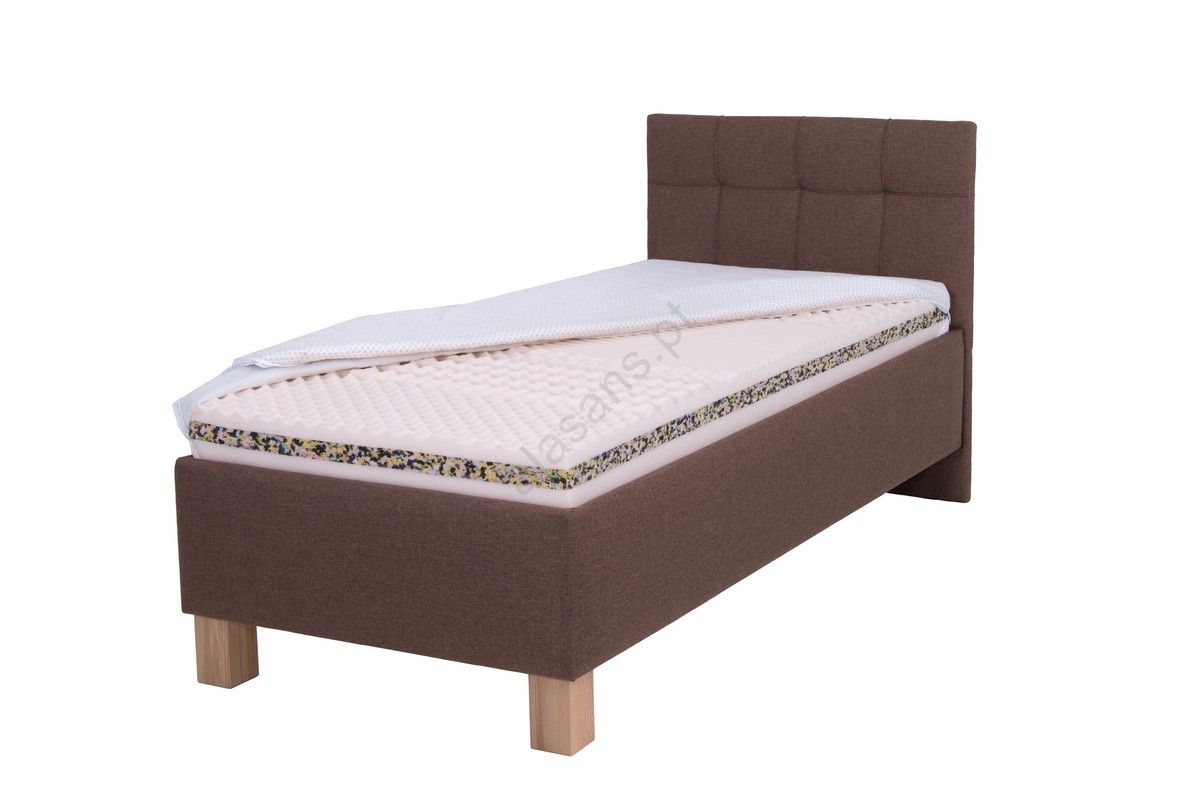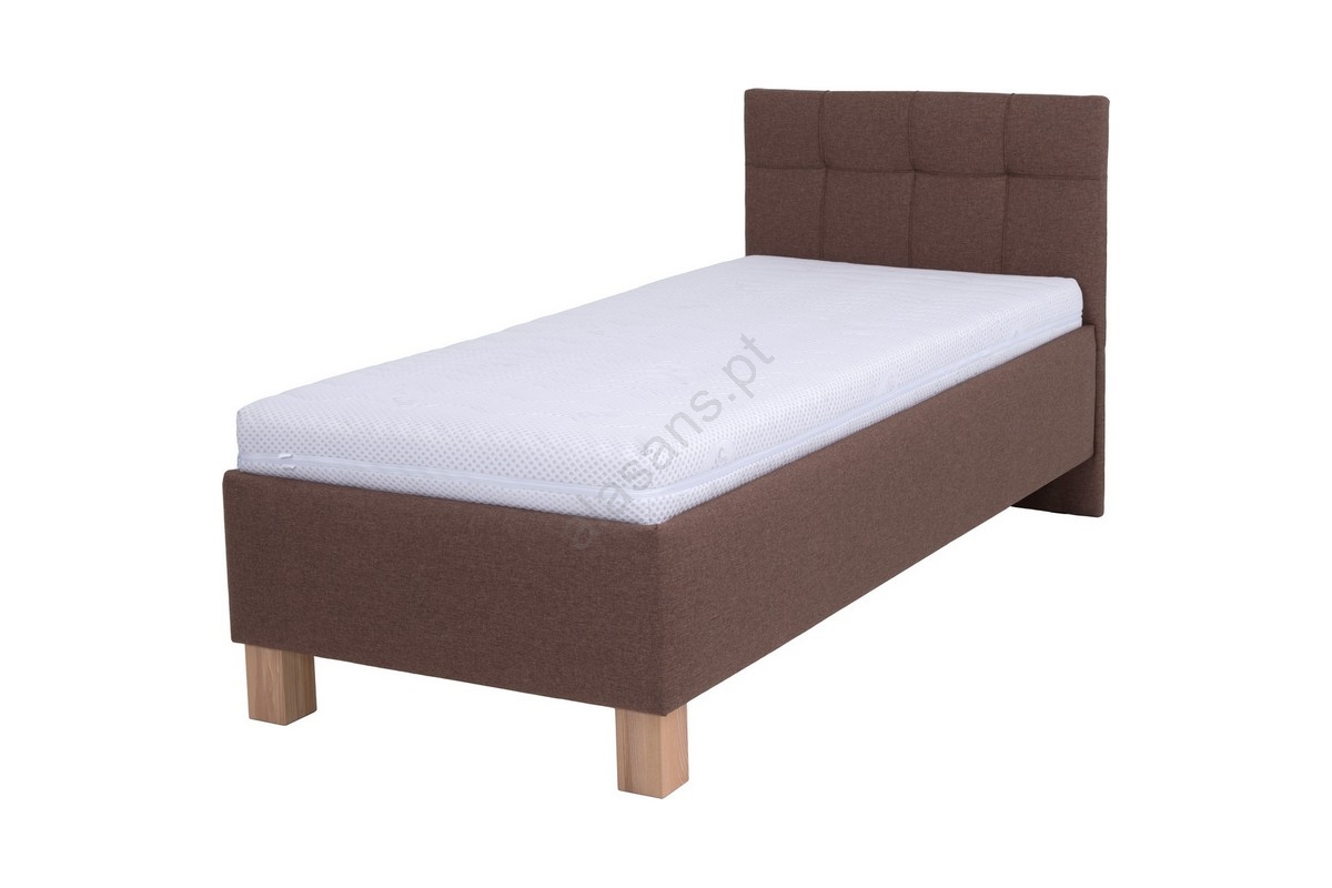 • Cama estofada MARIA ONE 90x200 cm com colchão e espaço de arrumação, castanha