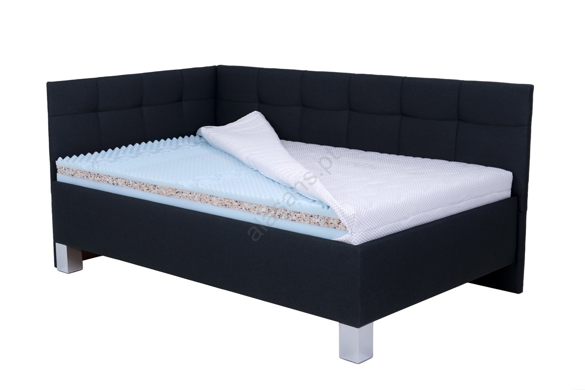 • Cama estofada MARIA PETITE 120x200 cm com colchão e arrumação integrada, cinzenta