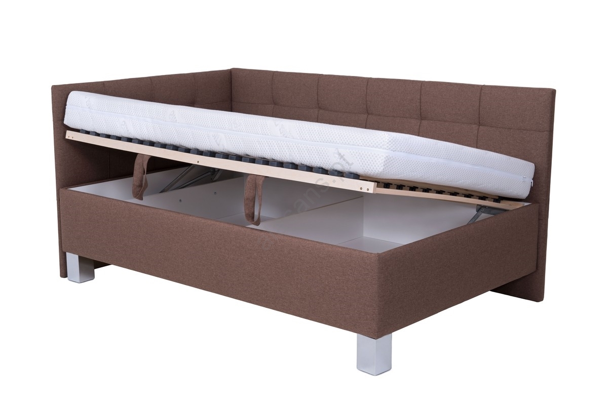 Cama estofada com espaço de arrumação, sem colchão, MARIA PETITE 120x200 cm, castanha