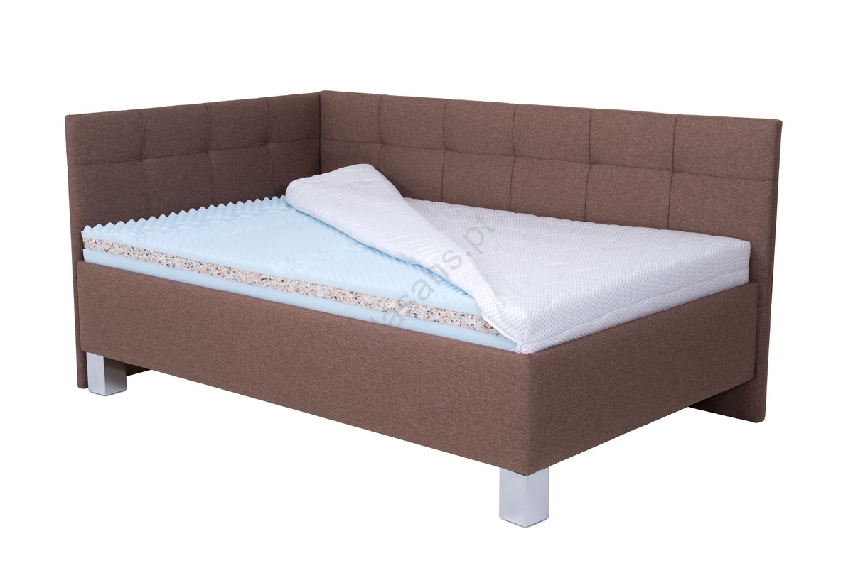 • Cama estofada MARIA PETITE 120 x 200 cm, com colchão e arrumação integrada, castanha