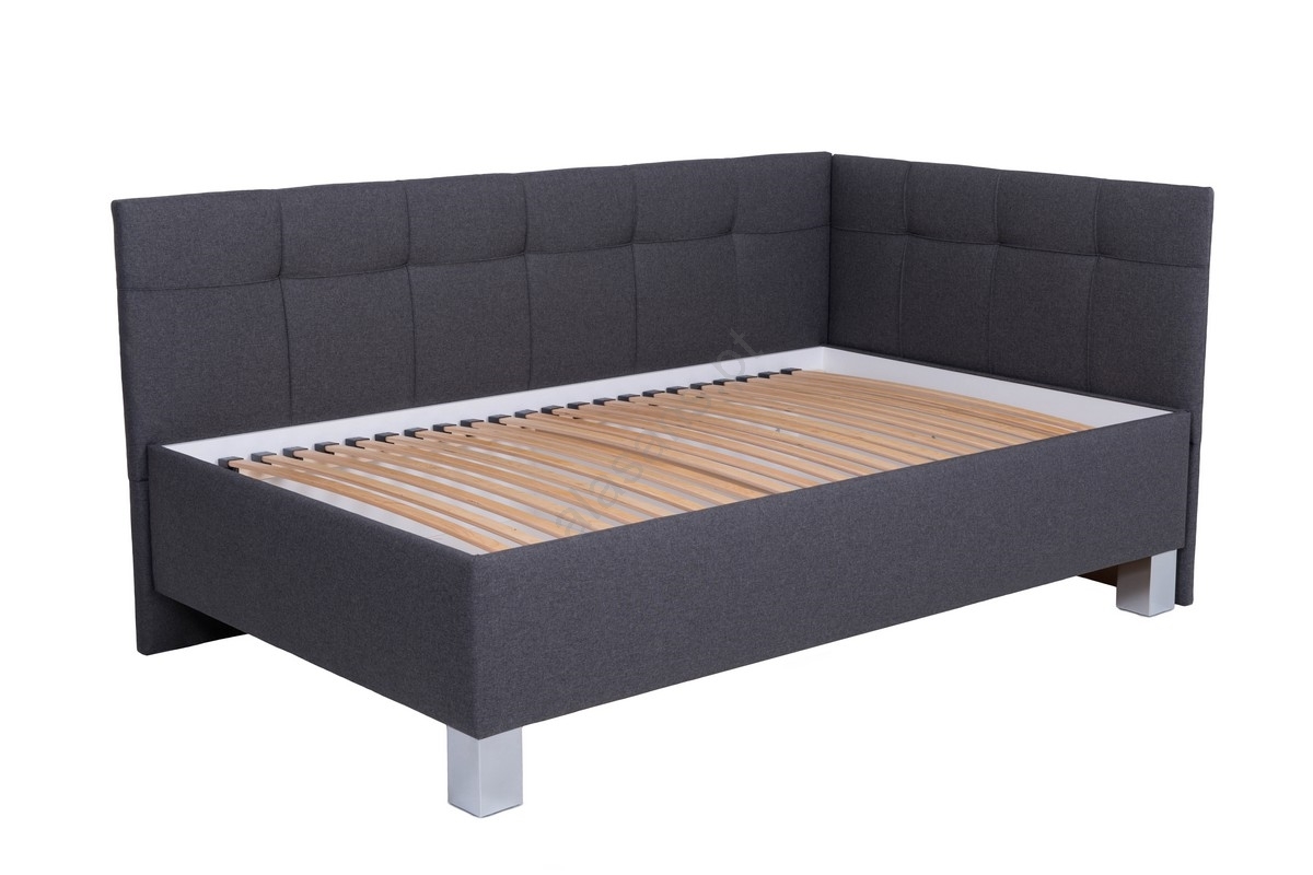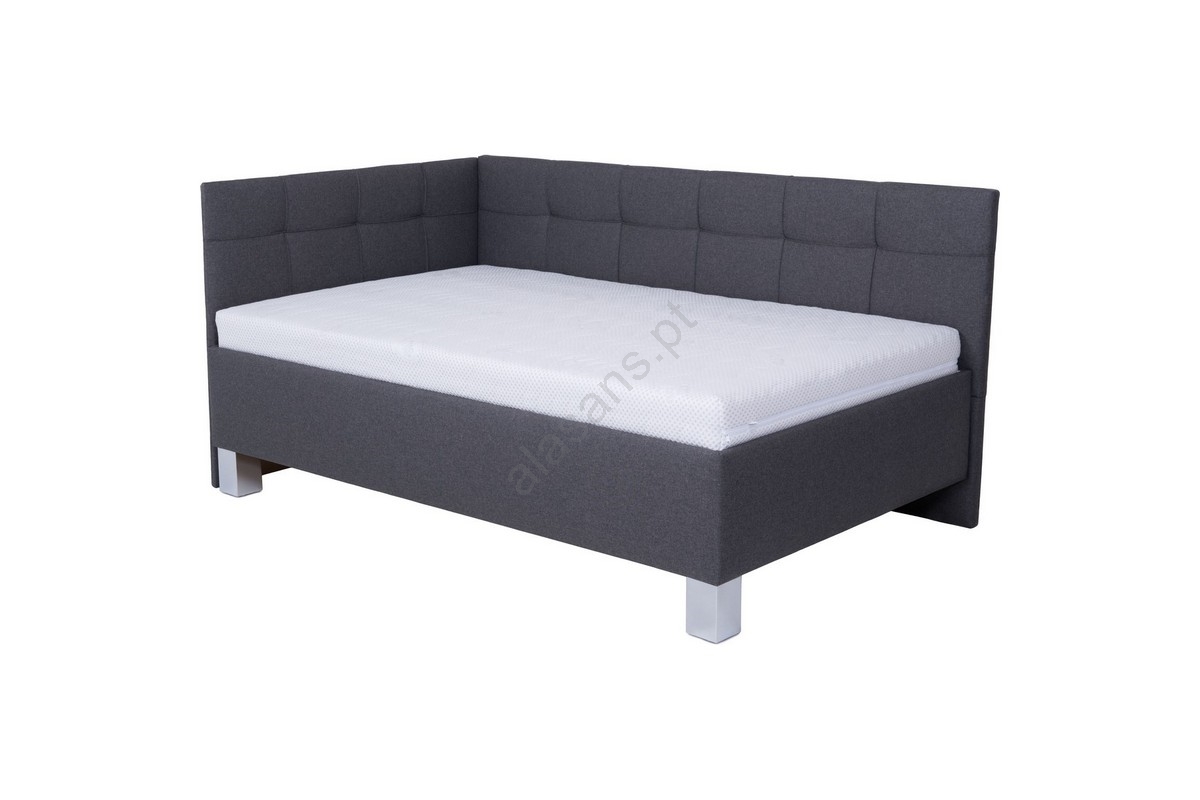 • Cama estofada MARIA PETITE 120x200 cm com colchão e arrumação integrada, cinzenta