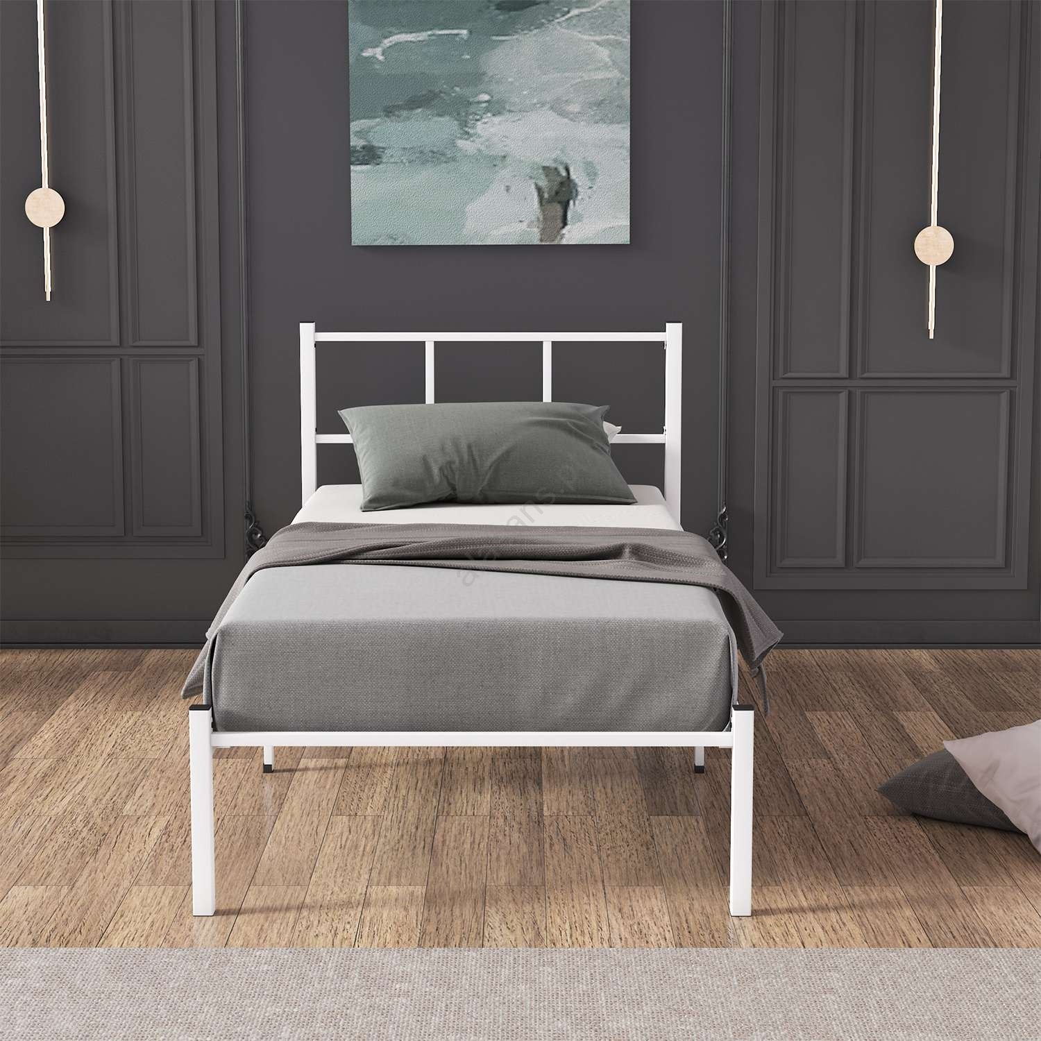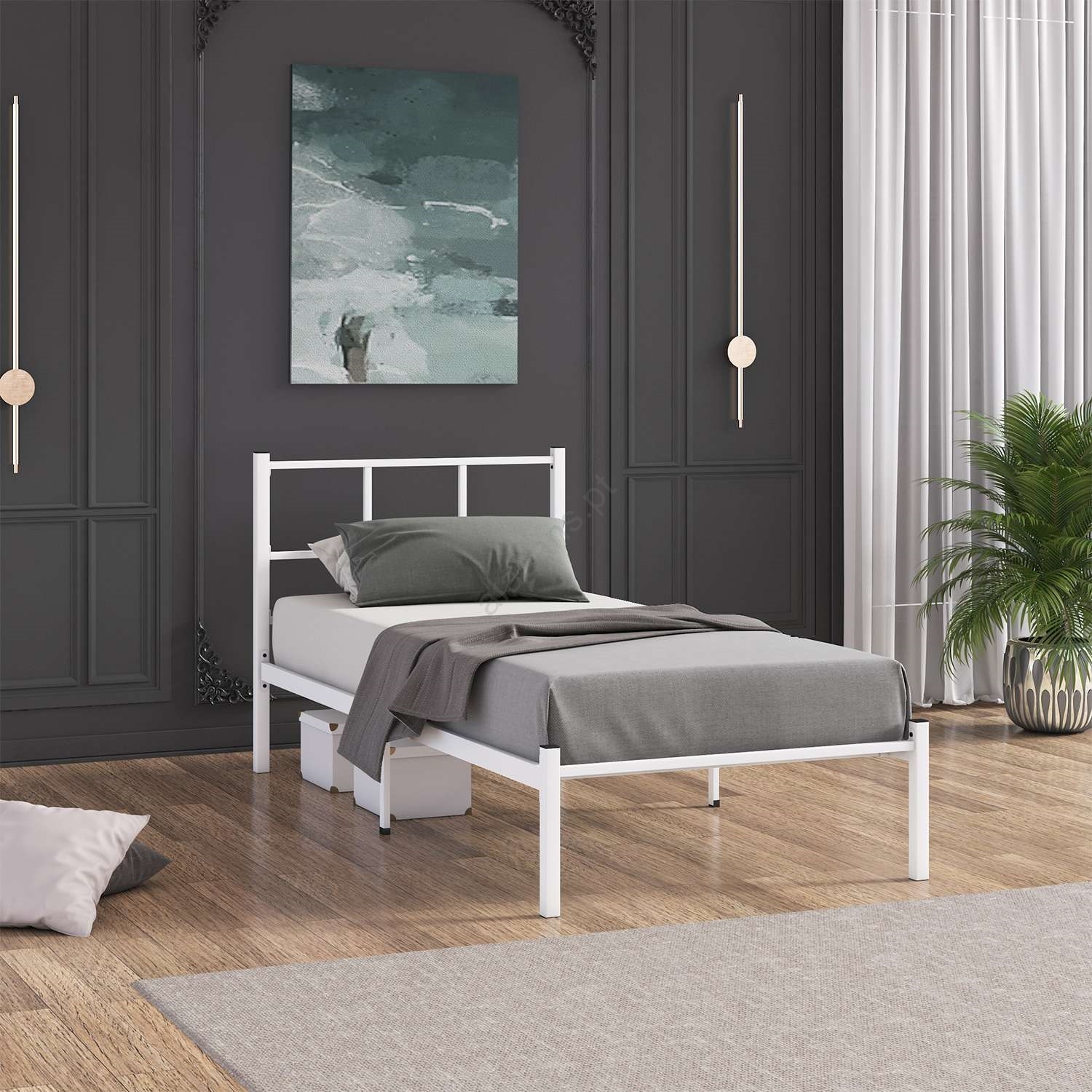 Cama de solteiro metálica ROVAN 90 x 200 cm, branca — suporta até 120 kg