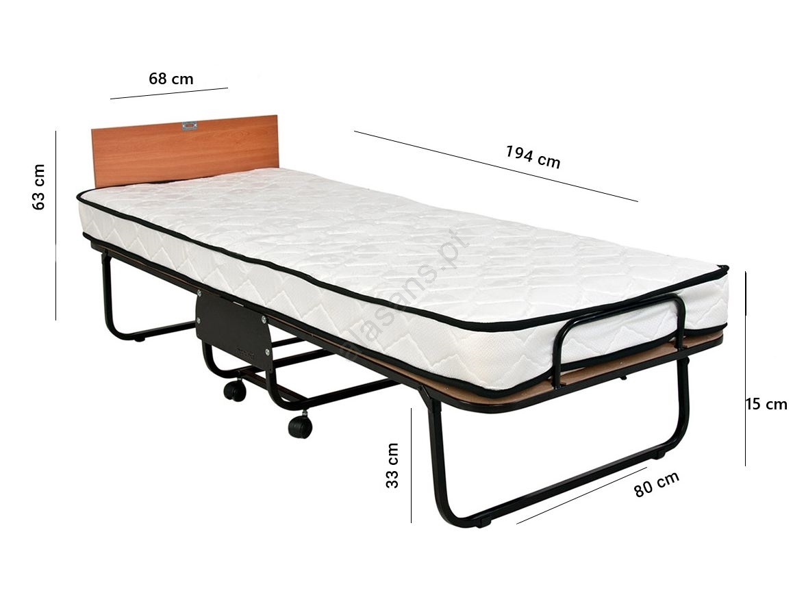 • A cama dobrável vem com cabeceira e colchão de molas de 15 cm, que proporciona o máximo conforto para um sono tranquilo.