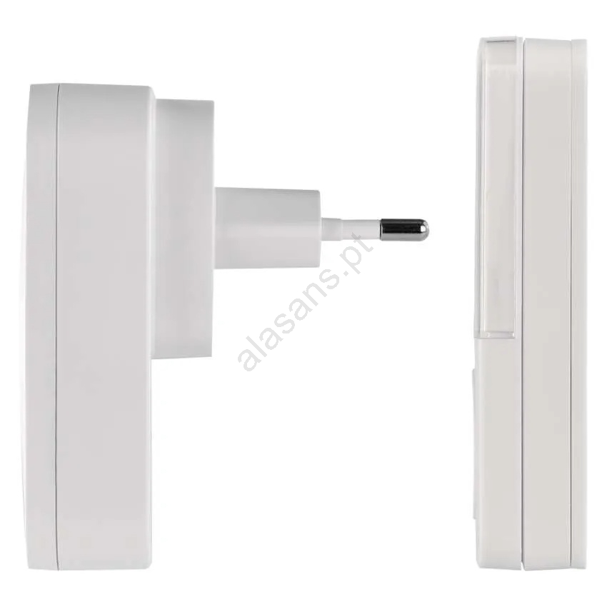 • Botão resistente à água com classificação IP44, receptor ligado diretamente à tomada (230 V AC) — sem cabos complicados, instalação simples.