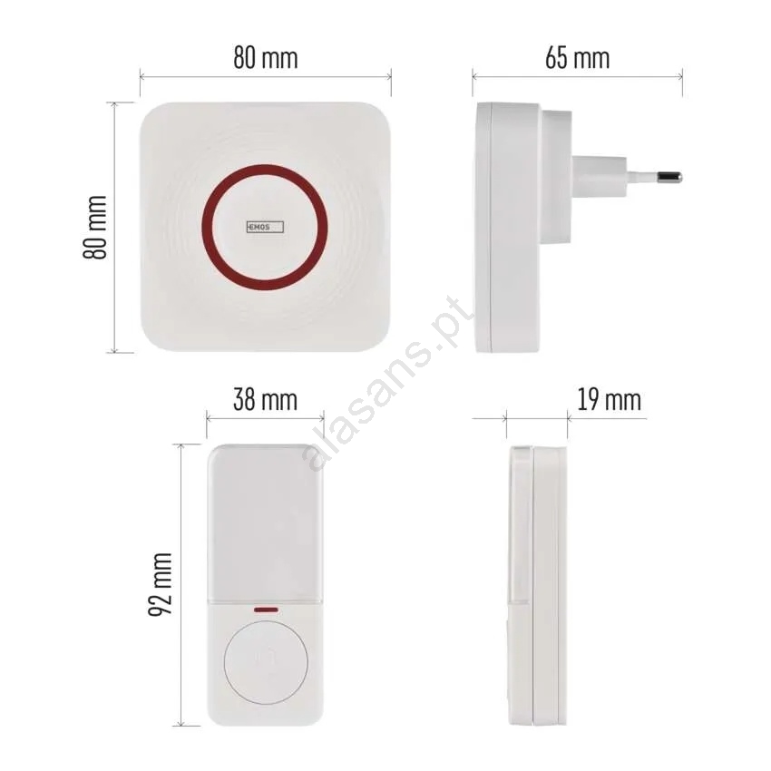 • 52 melodias à escolha e possibilidade de ajustar o volume até ~110 dB (4 níveis) — cada botão pode ter a sua própria melodia e nível de volume.