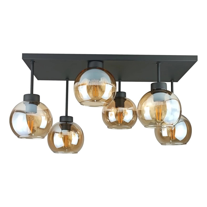 • Candeeiro integrado NESSA 6xE27/60W/230V preto/fumado preto