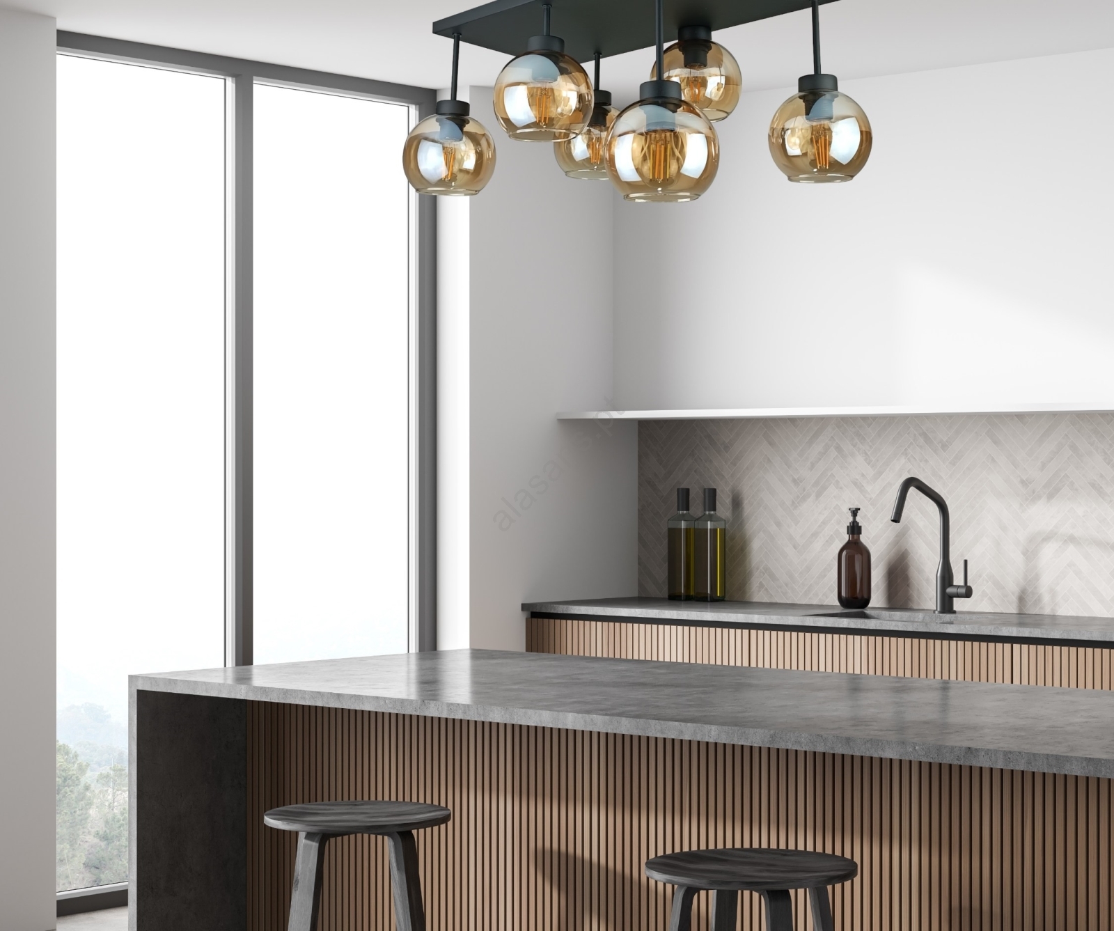 • Candeeiro integrado NESSA 6xE27/60W/230V preto/transparente