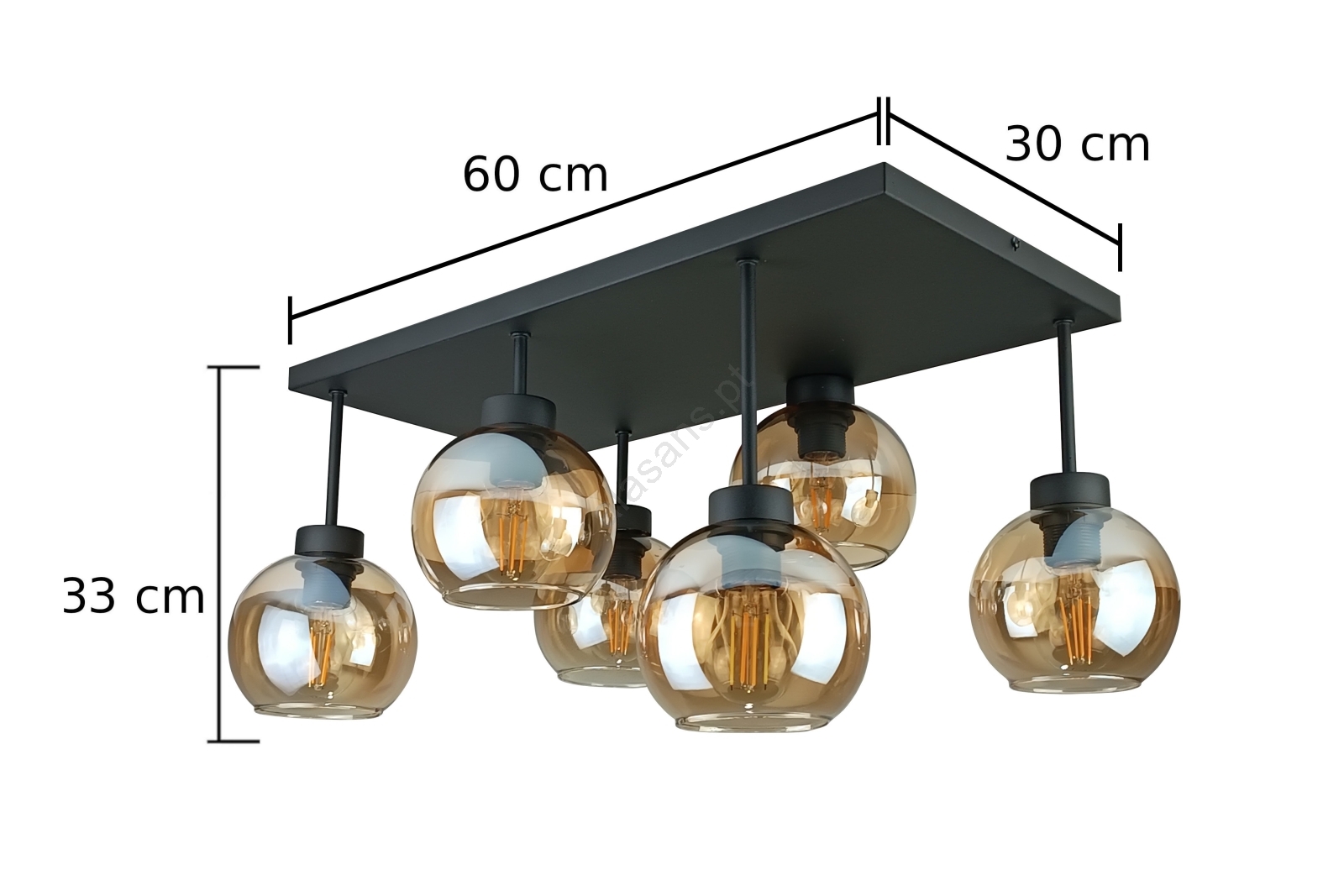 Candeeiro integrado NESSA 6xE27/60W/230V preto/fumado bege caracteriza-se por um design agradável e funcional.  Uma lâmpada com casquilho E27 é adequada para a iluminação Aqui, pode comprar outras lâmpadas a preços vantajosos. Terá um complemento interessante para a sua casa.
