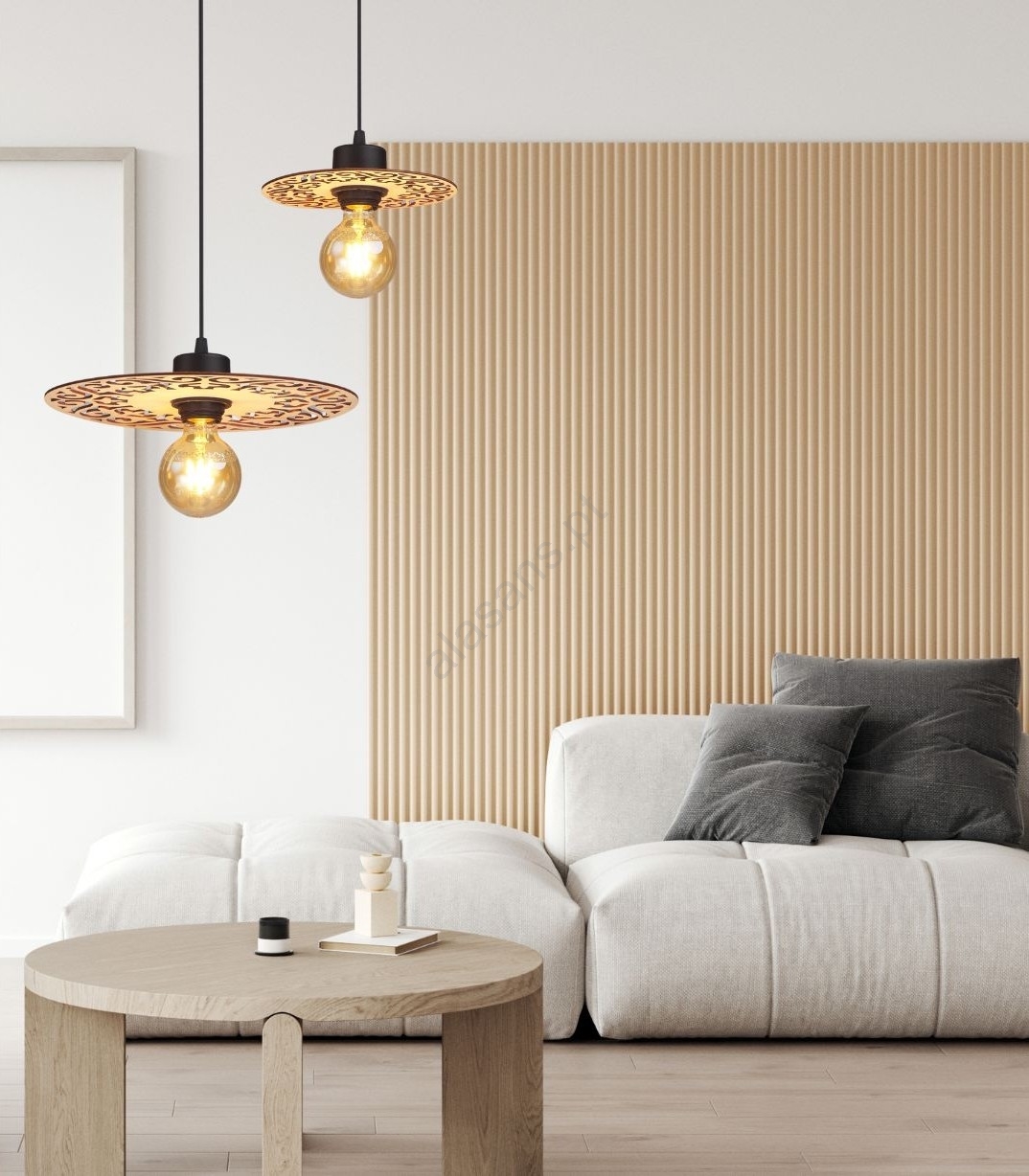 Candeeiro suspenso FALCO 1xE27/60W/230V diâmetro 20 cm bege caracteriza-se por um design agradável e funcional.  Uma lâmpada com casquilho E27 é adequada para a iluminação Aqui, pode comprar outras lâmpadas a preços vantajosos. Terá um complemento interessante para a sua casa.