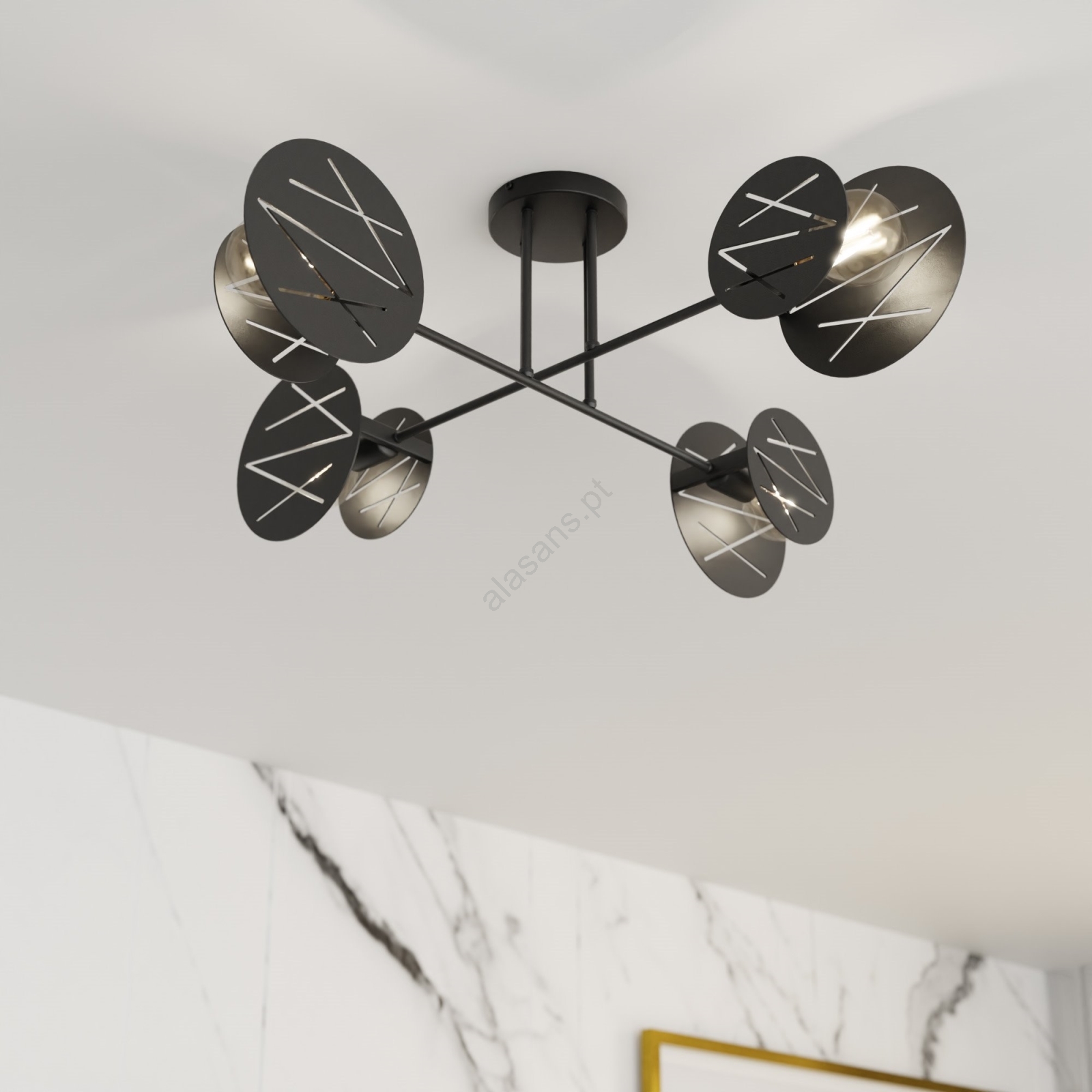Candeeiro suspenso FRICK 4xE27/15W/230V preto caracteriza-se por um design agradável e funcional.  Uma lâmpada com casquilho E27 é adequada para a iluminação Aqui, pode comprar outras lâmpadas a preços vantajosos. Terá um complemento interessante para a sua casa.