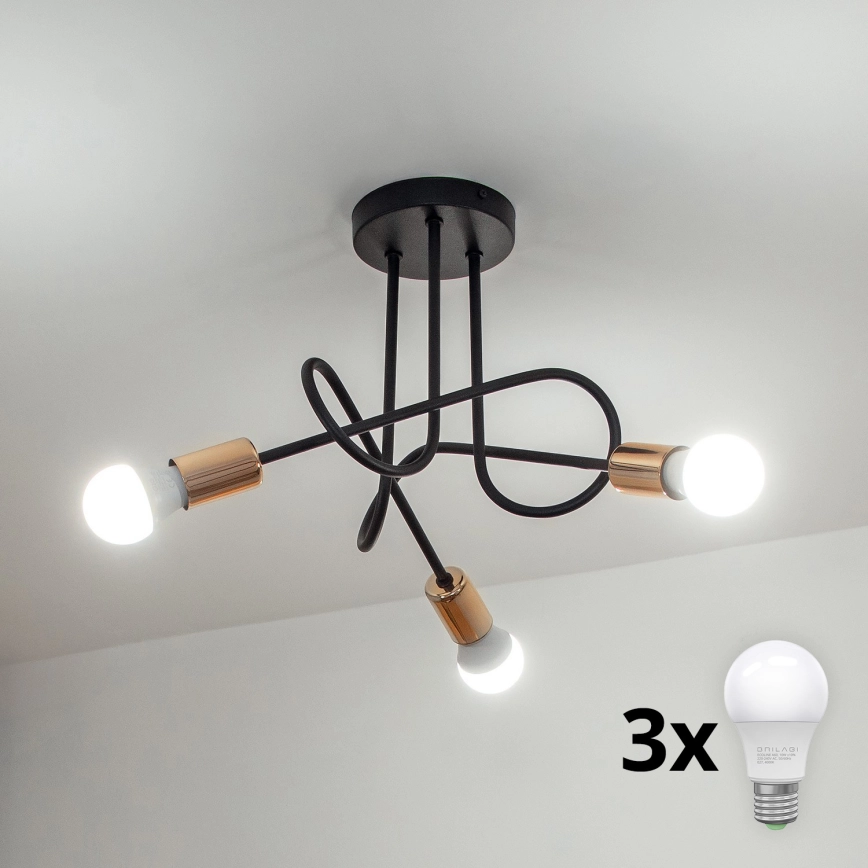 Candeeiro de tecto de superfície LED OXFORD 3xE27/15W/230V preto