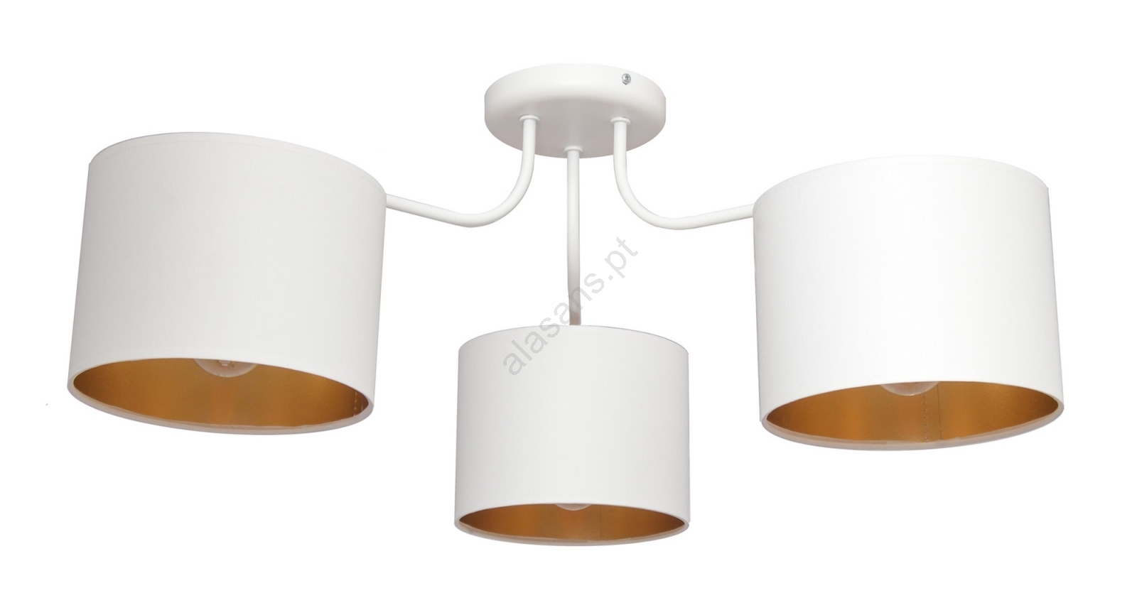 Candelabro montado à superfície ALBA 3xE27/15W/230V branco/dourado caracteriza-se por um design agradável e funcional.  Uma lâmpada com casquilho E27 é adequada para a iluminação Aqui, pode comprar outras lâmpadas a preços vantajosos. Terá um complemento interessante para a sua casa.