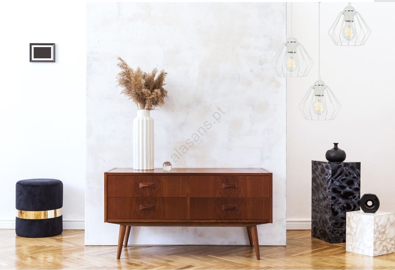 Candelabro suspenso CEED 3xE27/60W/230V branco caracteriza-se por um design agradável e funcional.  Uma lâmpada com casquilho E27 é adequada para a iluminação Aqui, pode comprar outras lâmpadas a preços vantajosos. Terá um complemento interessante para a sua casa.