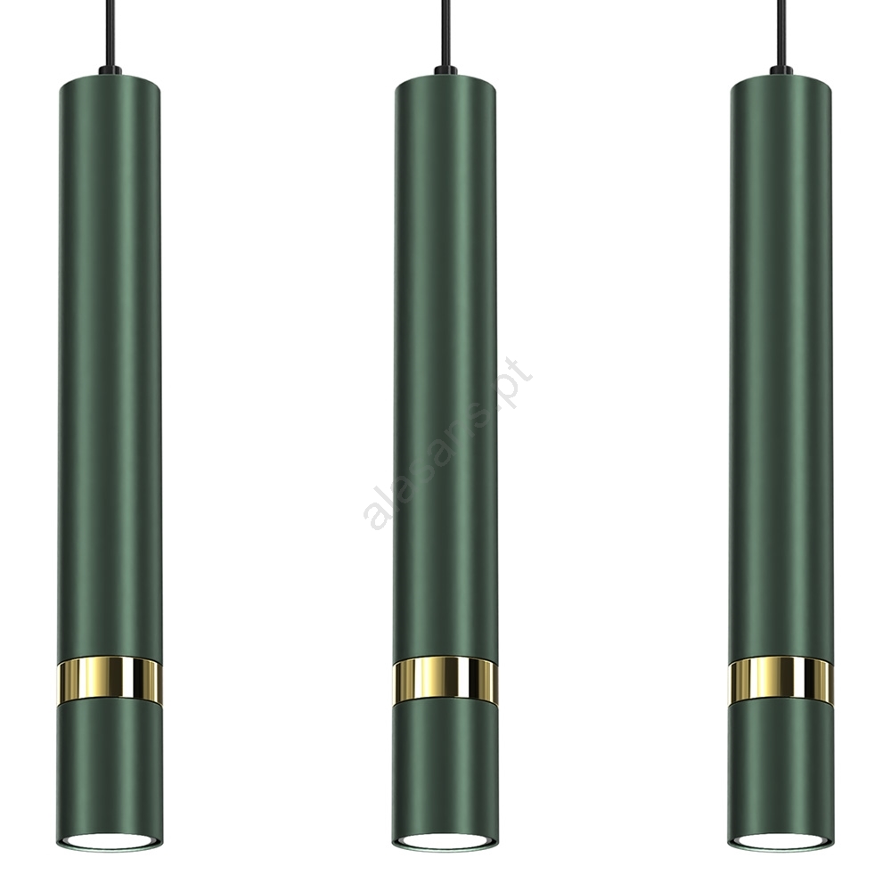 Candeeiro suspenso em cabo JOKER 3xGU10/25W/230V verde/dourado caracteriza-se por um design agradável e funcional.  Uma lâmpada com casquilho GU10 é adequada para a iluminação Aqui, pode comprar outras lâmpadas a preços vantajosos. Terá um complemento interessante para a sua casa.