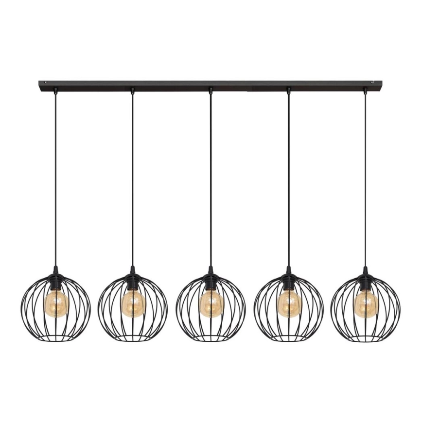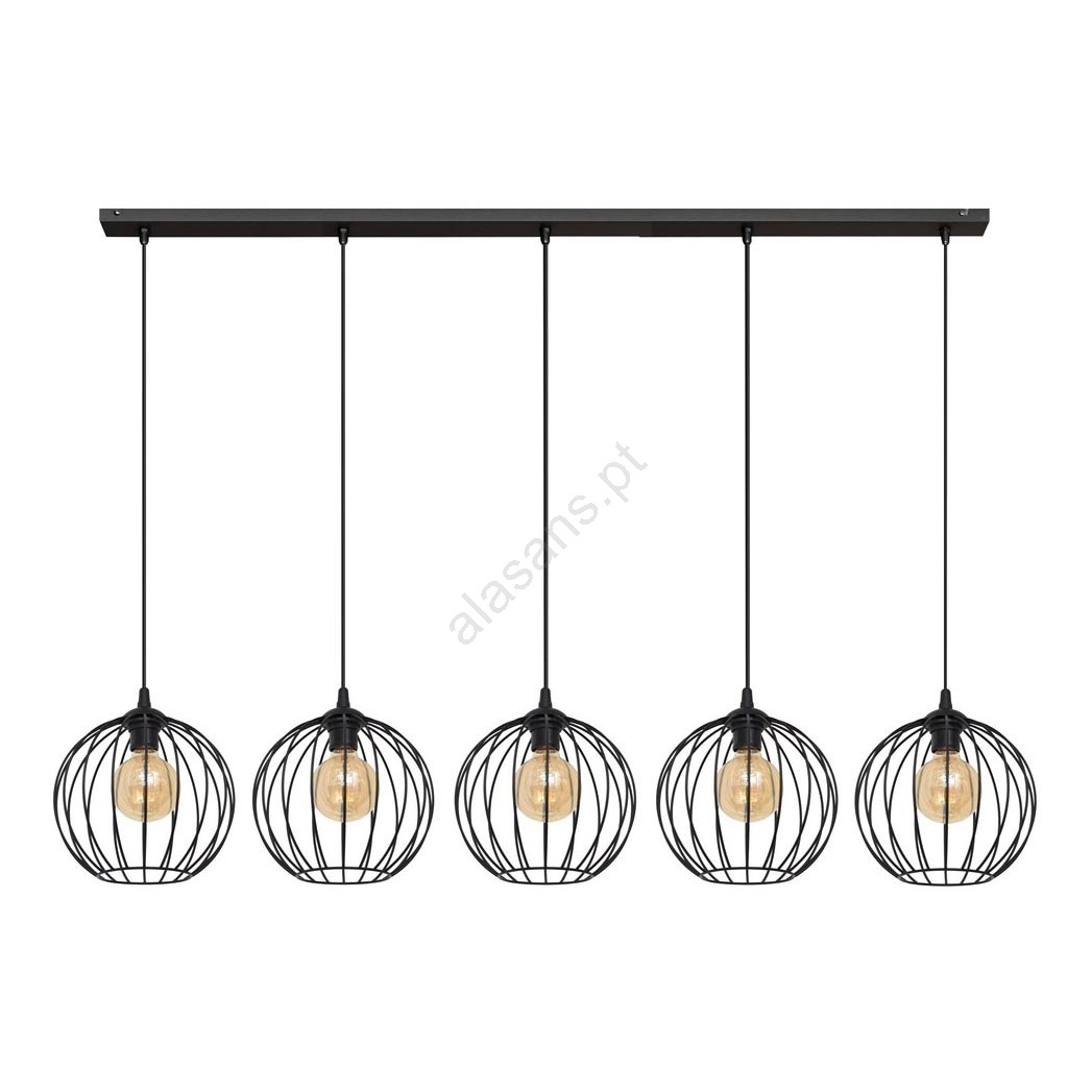 Candelabro suspenso MERCURE 5xE27/15W/230V preto caracteriza-se por um design agradável e funcional.  Uma lâmpada com casquilho E27 é adequada para a iluminação Aqui, pode comprar outras lâmpadas a preços vantajosos. Terá um complemento interessante para a sua casa.