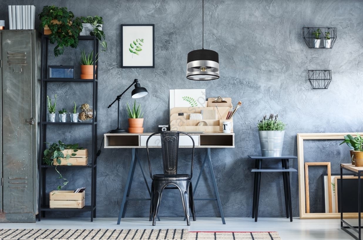 Candelabro suspenso MILO 1xE27/60W/230V prateado/preto caracteriza-se por um design agradável e funcional.  Uma lâmpada com casquilho E27 é adequada para a iluminação Aqui, pode comprar outras lâmpadas a preços vantajosos. Terá um complemento interessante para a sua casa.