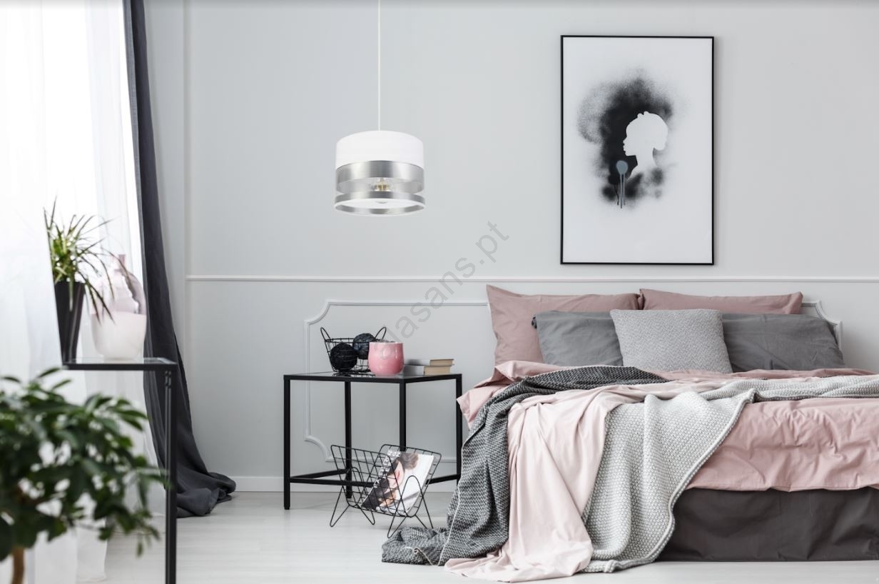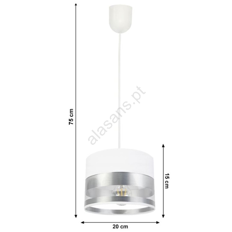 Candelabro suspenso MILO 1xE27/60W/230V prateado caracteriza-se por um design agradável e funcional.  Uma lâmpada com casquilho E27 é adequada para a iluminação Aqui, pode comprar outras lâmpadas a preços vantajosos. Terá um complemento interessante para a sua casa.