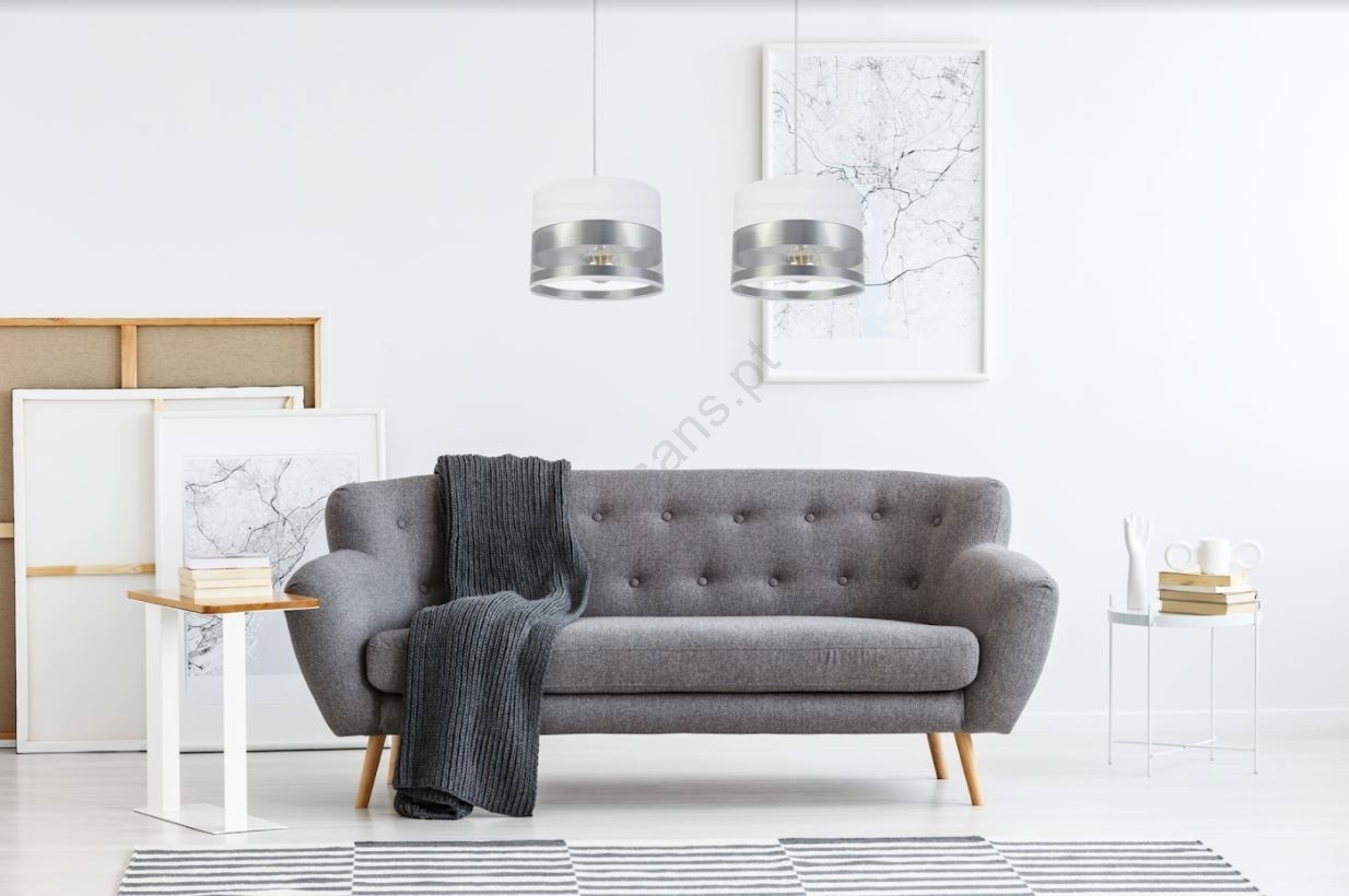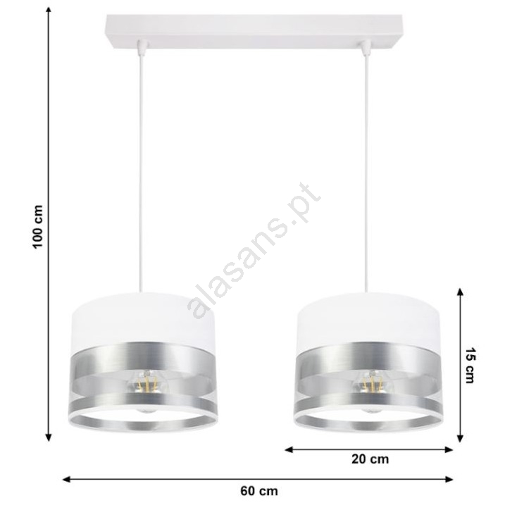 Candelabro suspenso MILO 2xE27/60W/230V prateado caracteriza-se por um design agradável e funcional.  Uma lâmpada com casquilho E27 é adequada para a iluminação Aqui, pode comprar outras lâmpadas a preços vantajosos. Terá um complemento interessante para a sua casa.