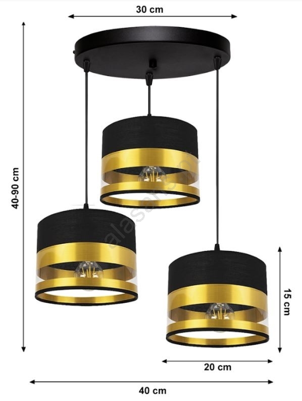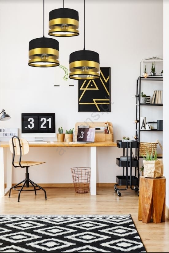 Candelabro suspenso MILO 3xE27/60W/230V dourado/preto caracteriza-se por um design agradável e funcional.  Uma lâmpada com casquilho E27 é adequada para a iluminação Aqui, pode comprar outras lâmpadas a preços vantajosos. Terá um complemento interessante para a sua casa.