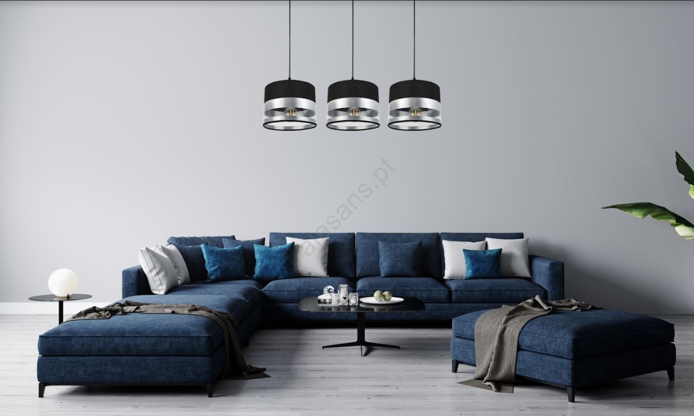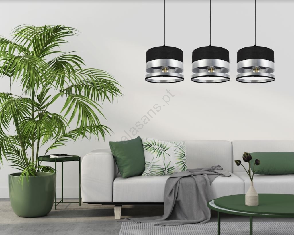 Candelabro suspenso MILO 3xE27/60W/230V prateado/preto caracteriza-se por um design agradável e funcional.  Uma lâmpada com casquilho E27 é adequada para a iluminação Aqui, pode comprar outras lâmpadas a preços vantajosos. Terá um complemento interessante para a sua casa.