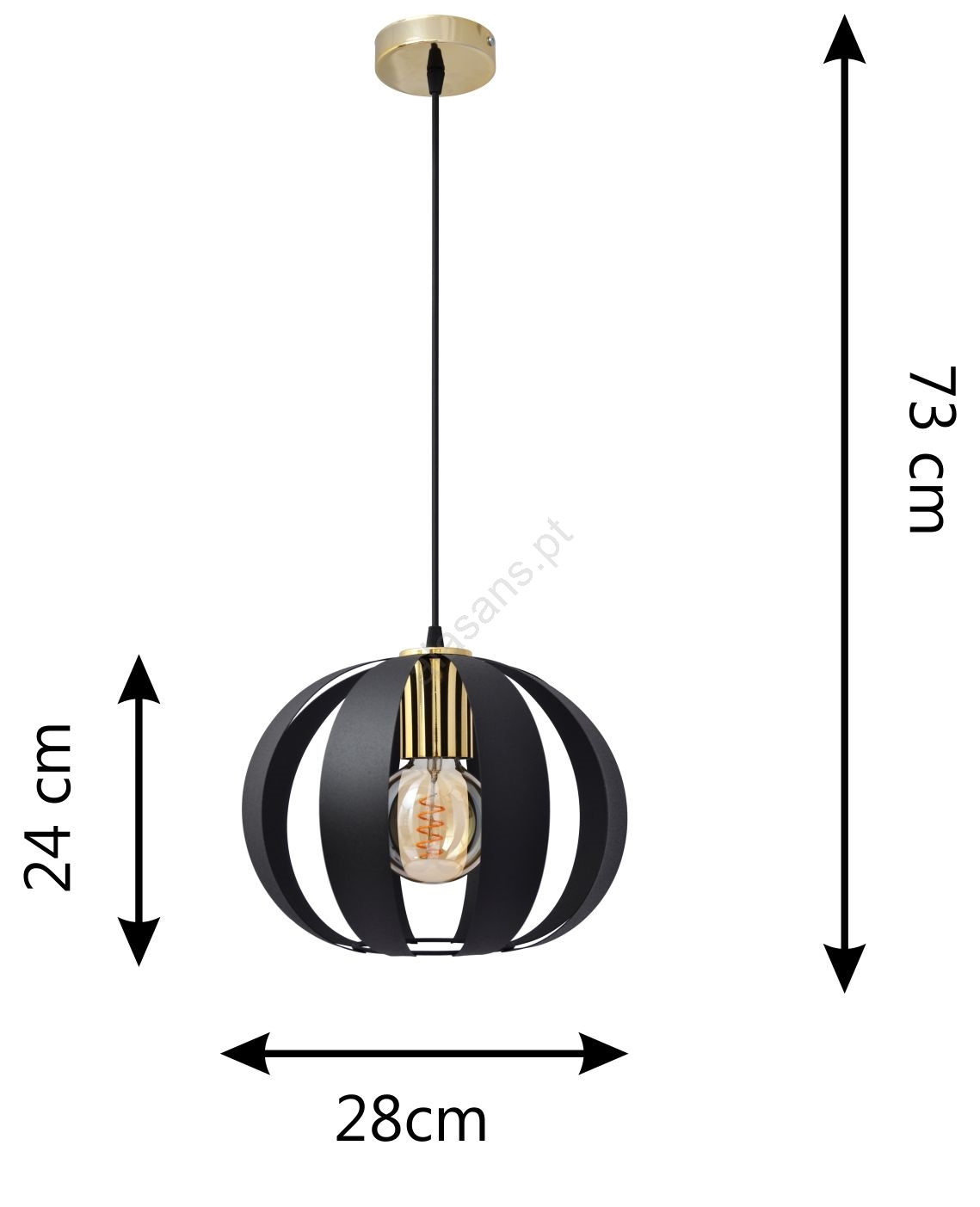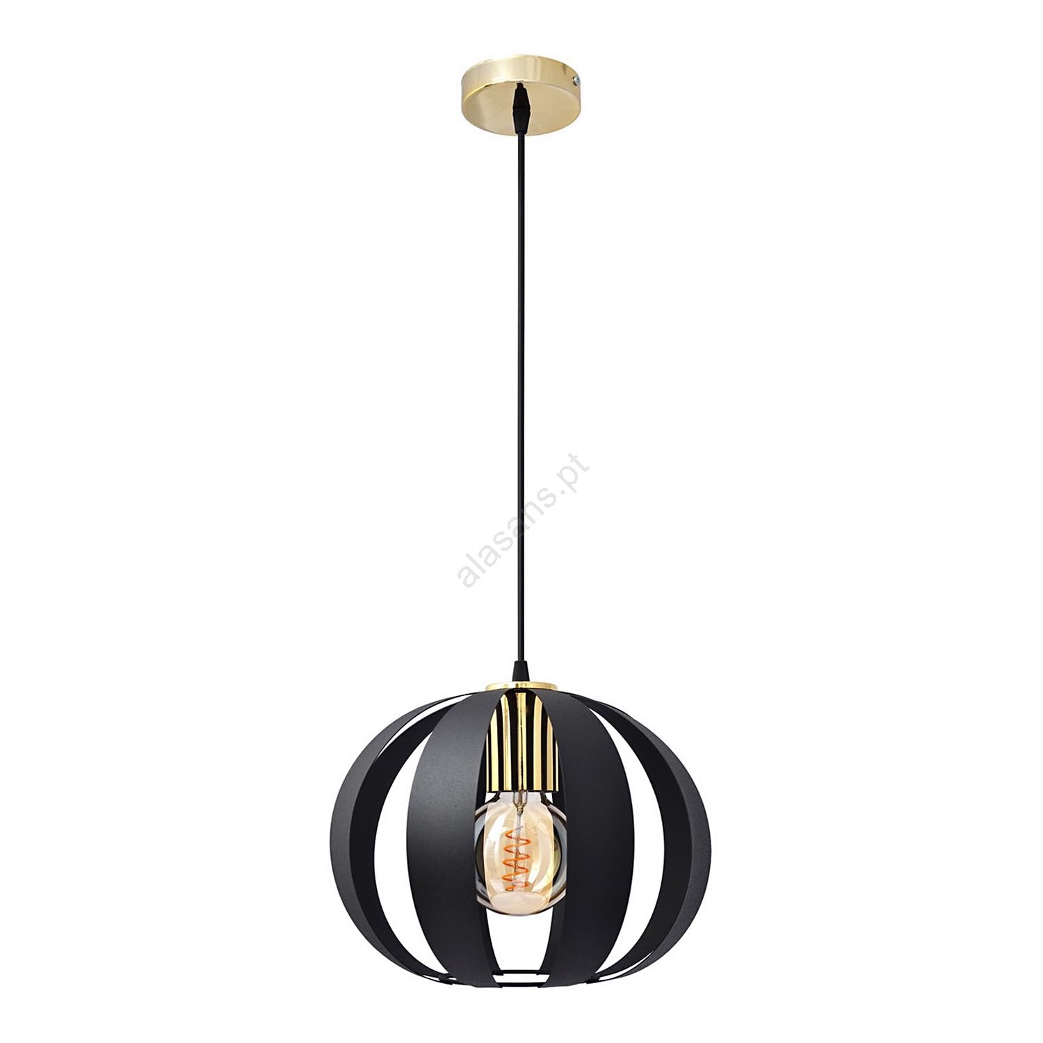 Candelabro suspenso NEWTON 1xE27/15W/230V preto/dourado caracteriza-se por um design agradável e funcional.  Uma lâmpada com casquilho E27 é adequada para a iluminação Aqui, pode comprar outras lâmpadas a preços vantajosos. Terá um complemento interessante para a sua casa.