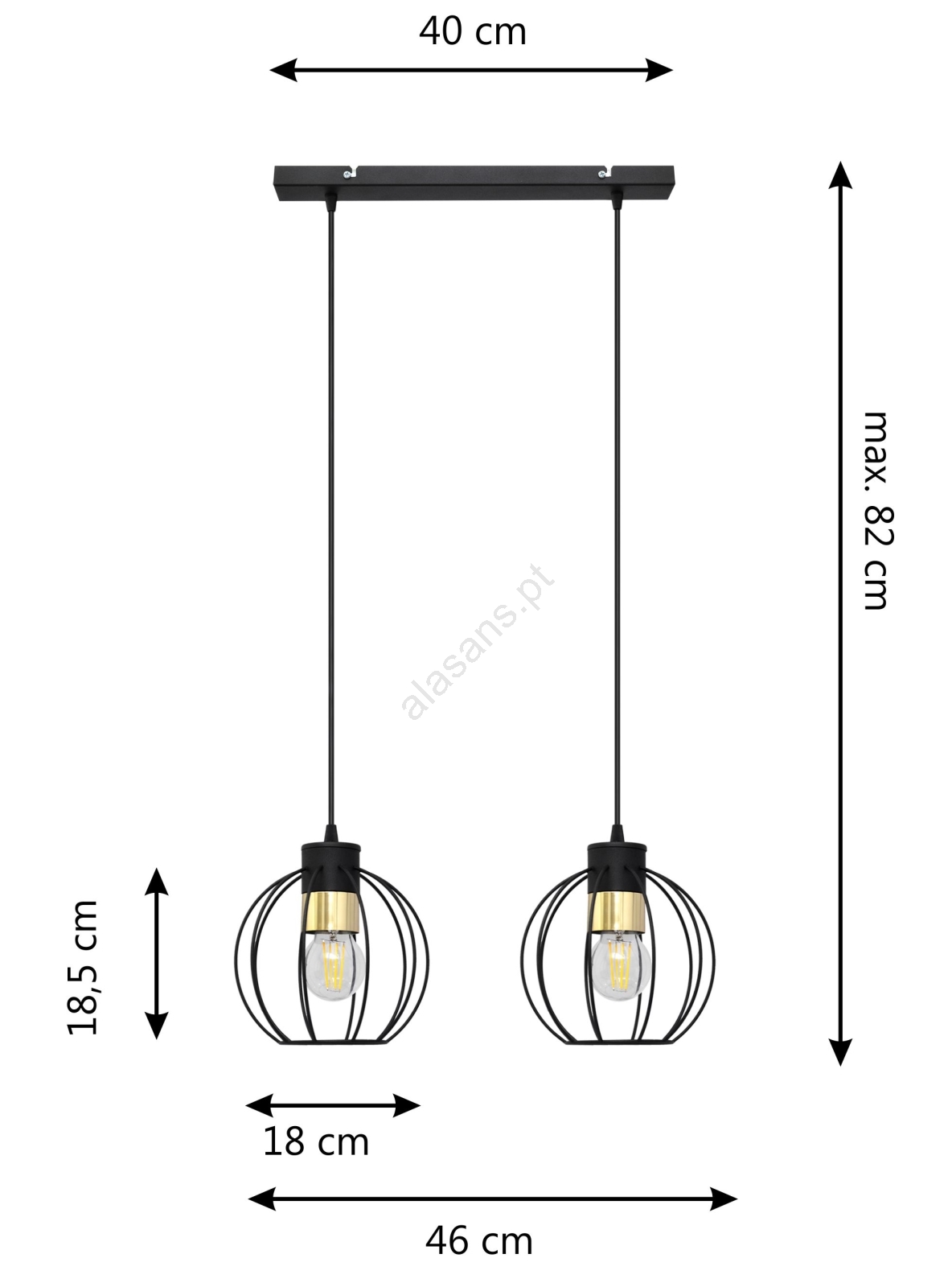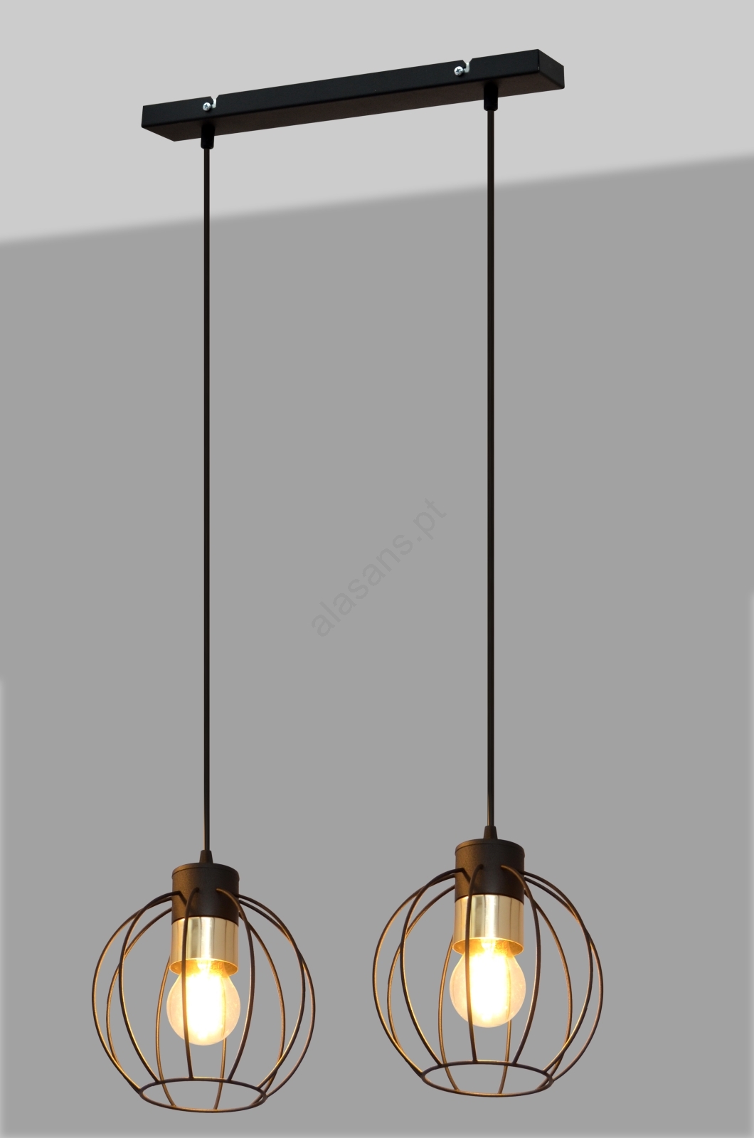 Candelabro suspenso STARLIGHT 2xE27/15W/230V preto/dourado caracteriza-se por um design agradável e funcional.  Uma lâmpada com casquilho E27 é adequada para a iluminação Aqui, pode comprar outras lâmpadas a preços vantajosos. Terá um complemento interessante para a sua casa.
