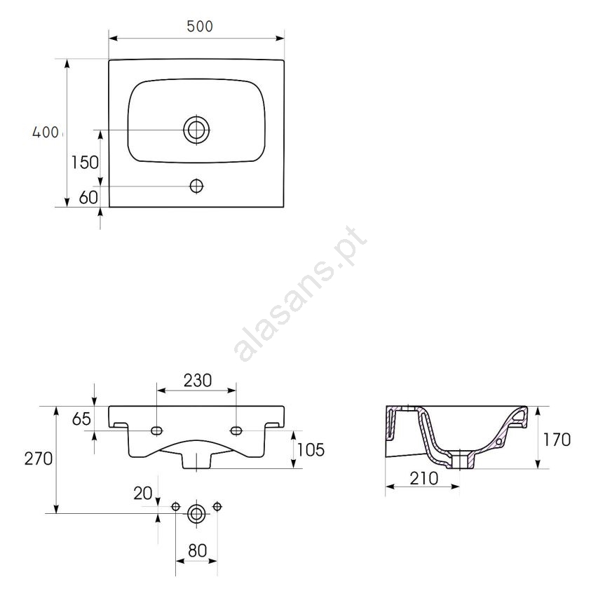 • A torneira para lavatório e a válvula de escoamento não estão incluídas na embalagem.