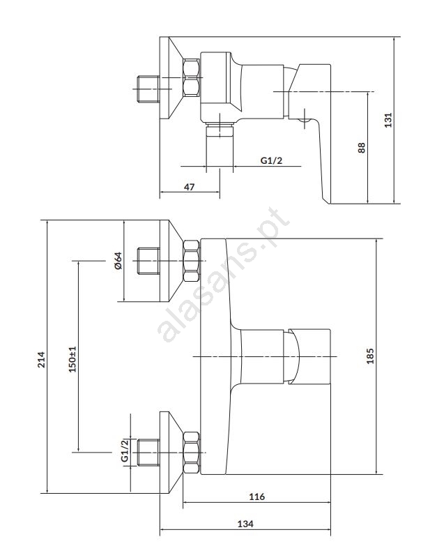 • Elemento de controlo: cartucho cerâmico de 35 mm.