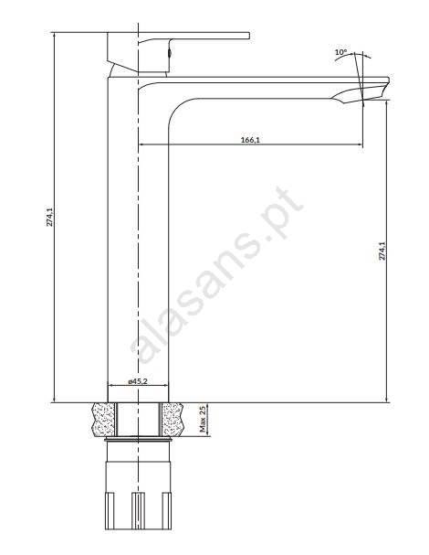 • Elemento de controlo: cartucho cerâmico de 35 mm.
