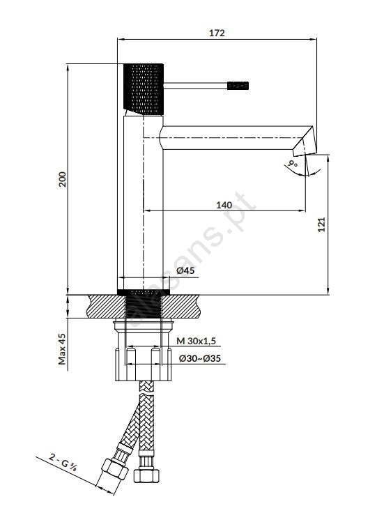 • Elemento de controlo: cartucho cerâmico de 25 mm.