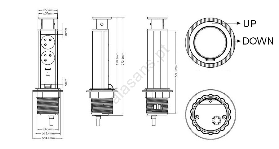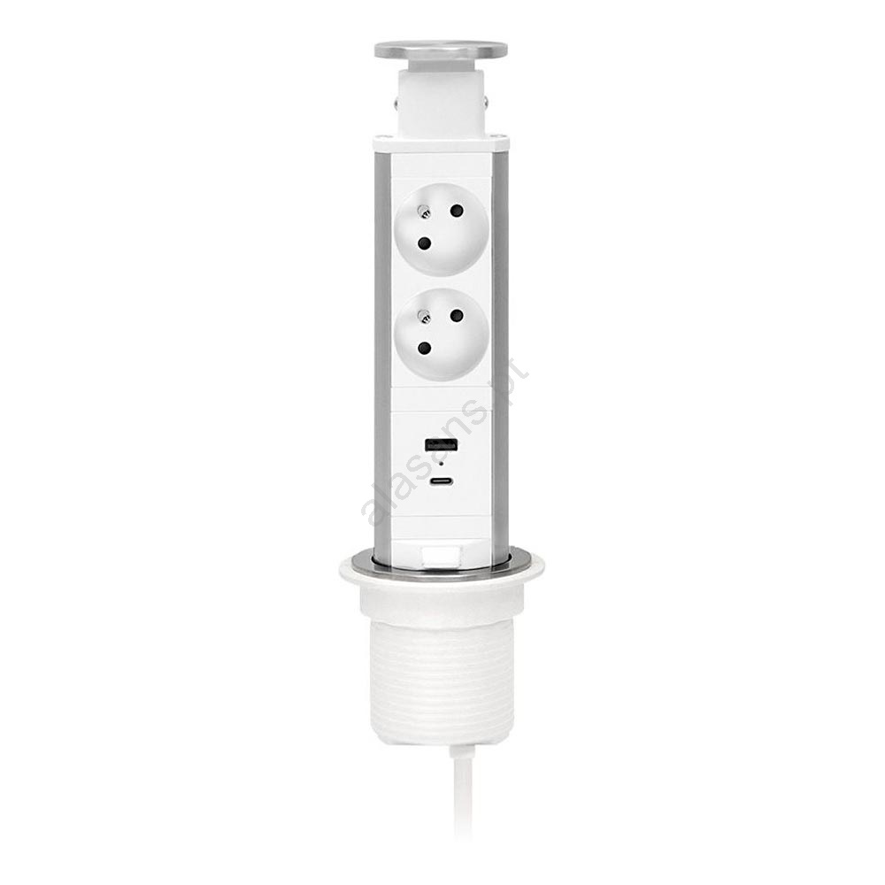 • Coluna de tomadas (2x tomadas e 2x USB) adequada para bancadas, secretárias, bem como cozinhas e mobiliário - simplesmente onde precisar de tomadas de corrente.