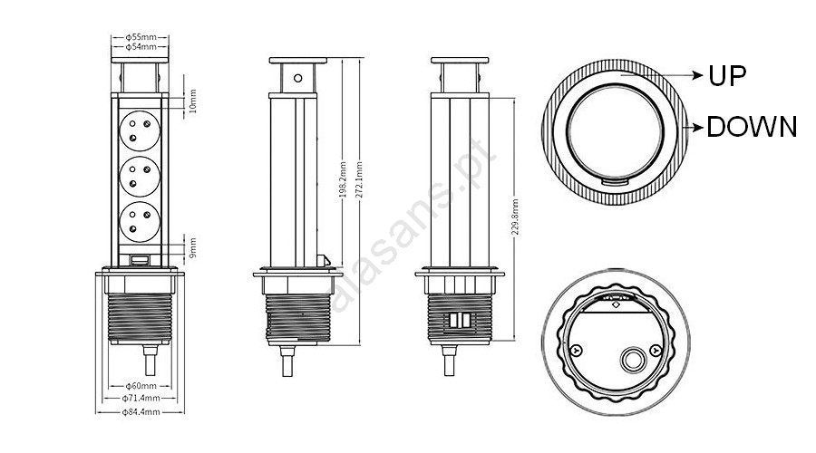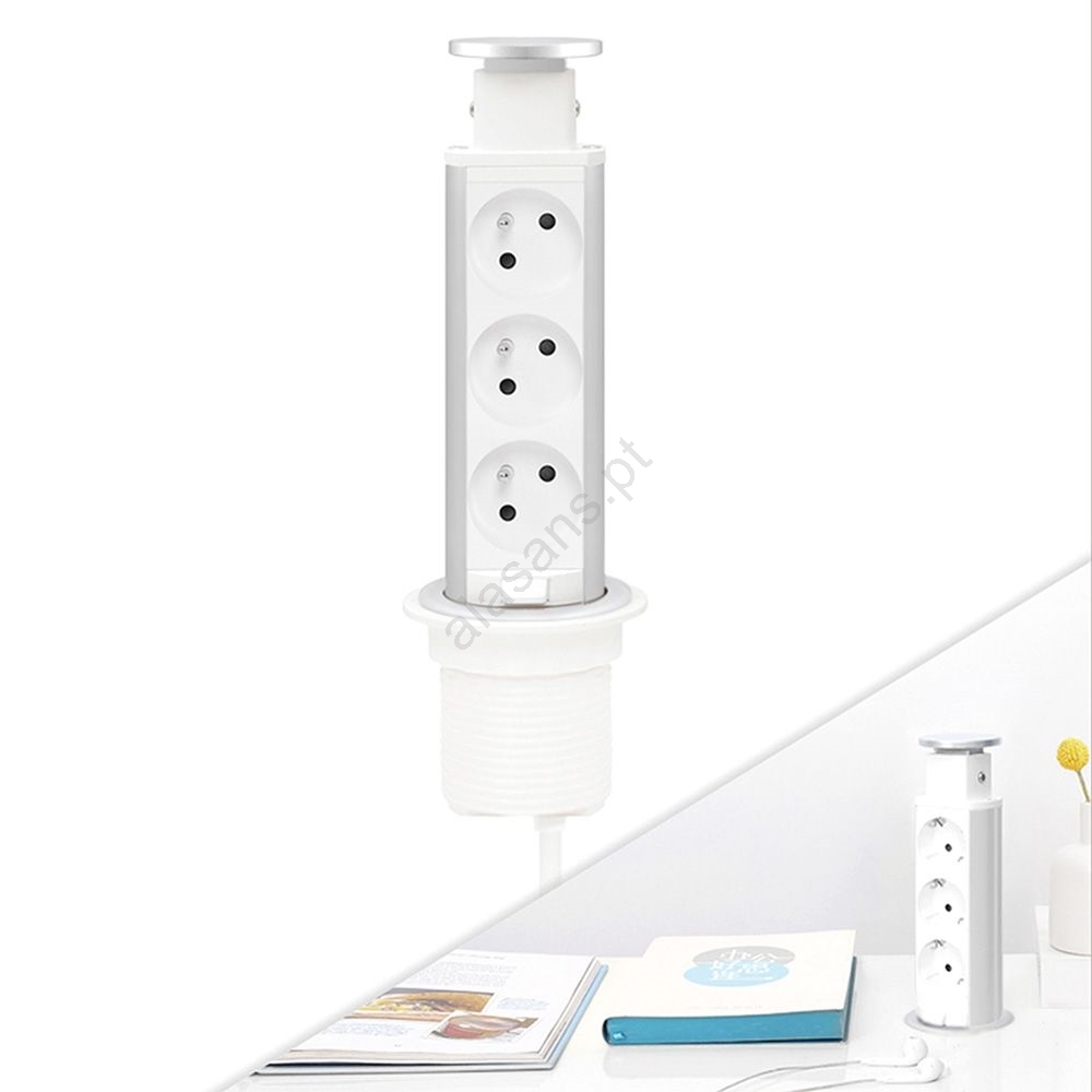 • Coluna de ligação - coluna de 3 tomadas encaixável (distribuidor) adequada para bancadas, secretárias, assim como cozinhas e móveis - essencialmente onde necessite de tomadas elétricas.