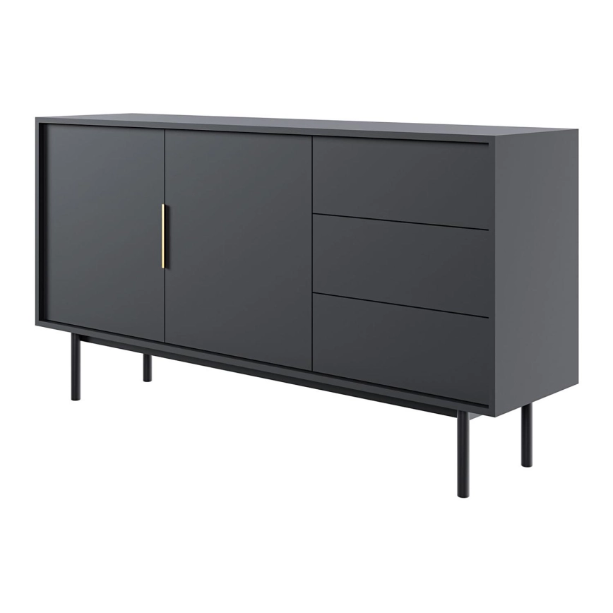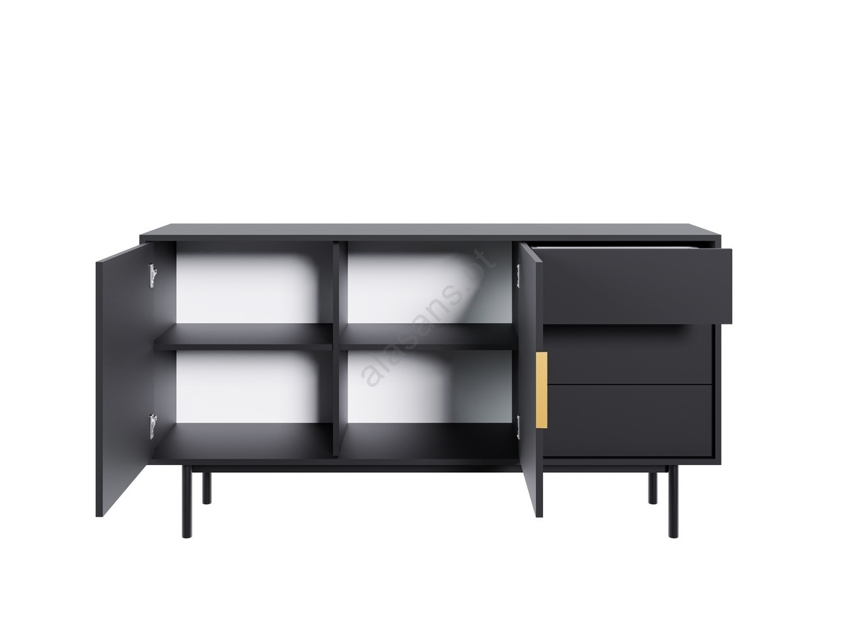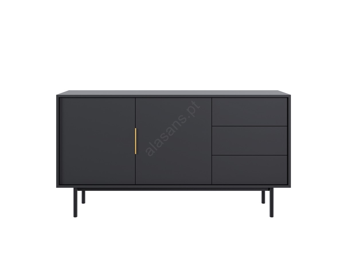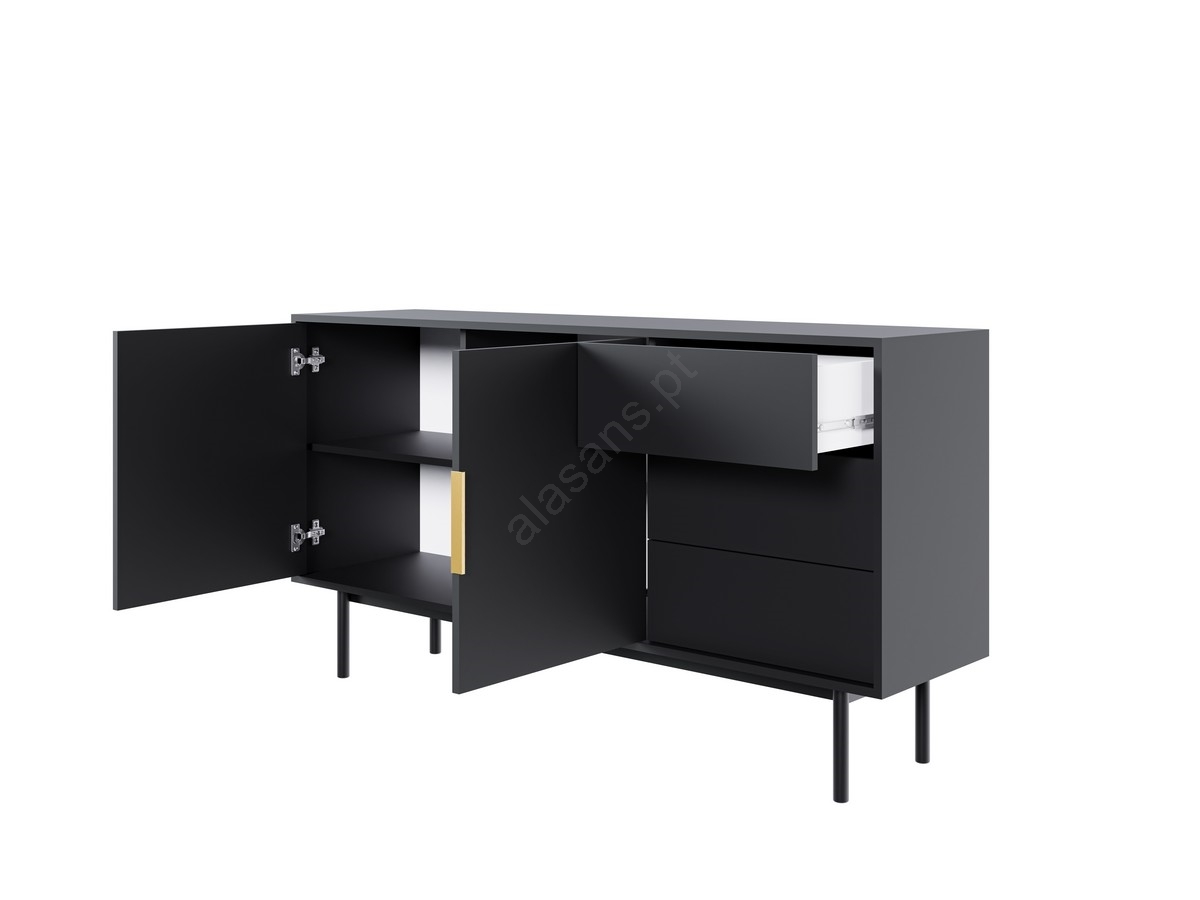 • Possui duas portas no lado esquerdo e três gavetas no lado direito, para uma arrumação prática e organizada.
